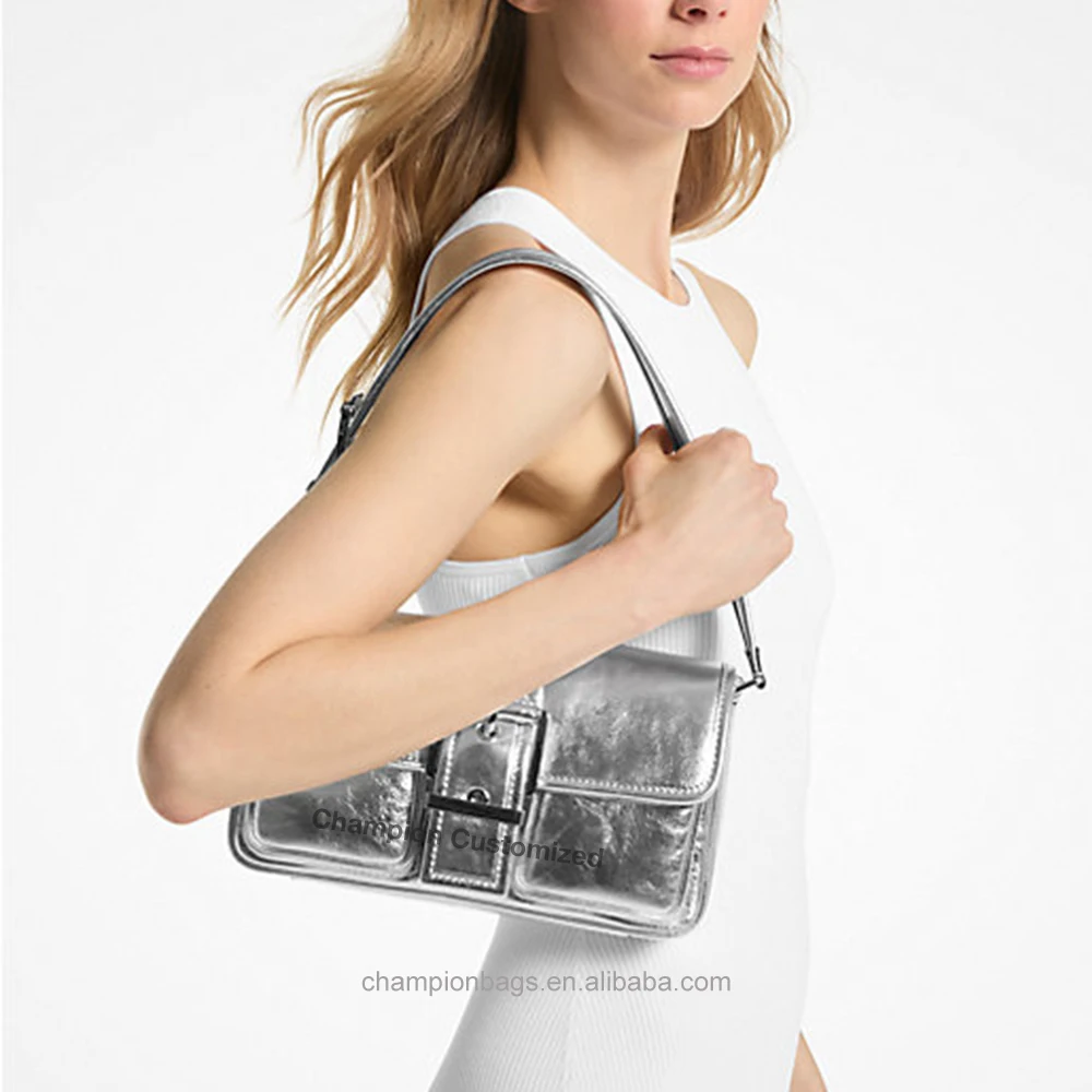 2026 New Custom Logo Silver Leather Fashion Ladies Crossbody Shoulder Bag Women Handbag Purse