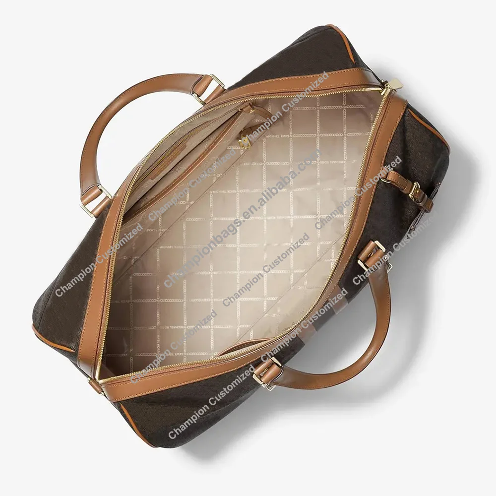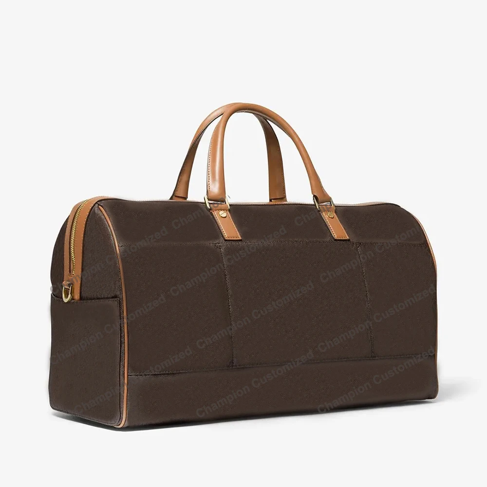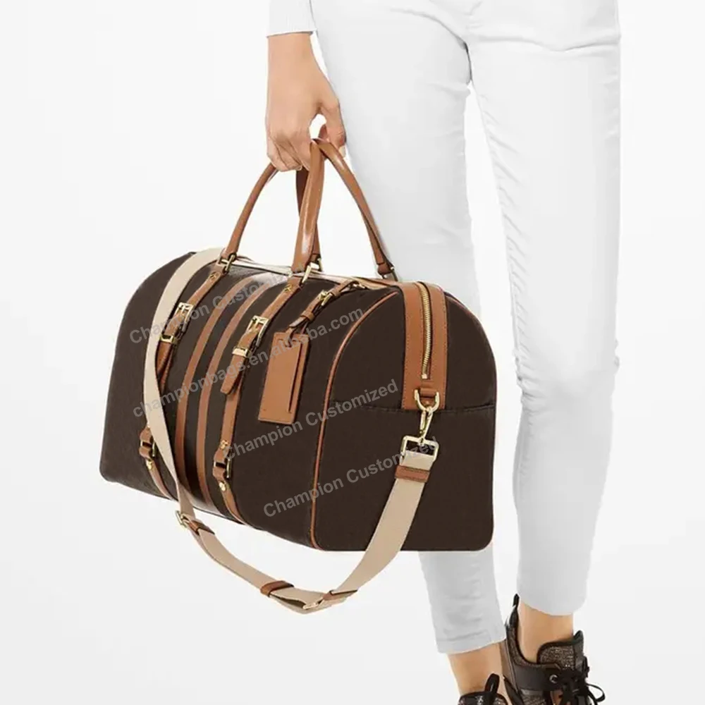 Custom Logo Corssgrain Leather Fashion Ladies Women Travel Overnight Weekender Duffle Bag