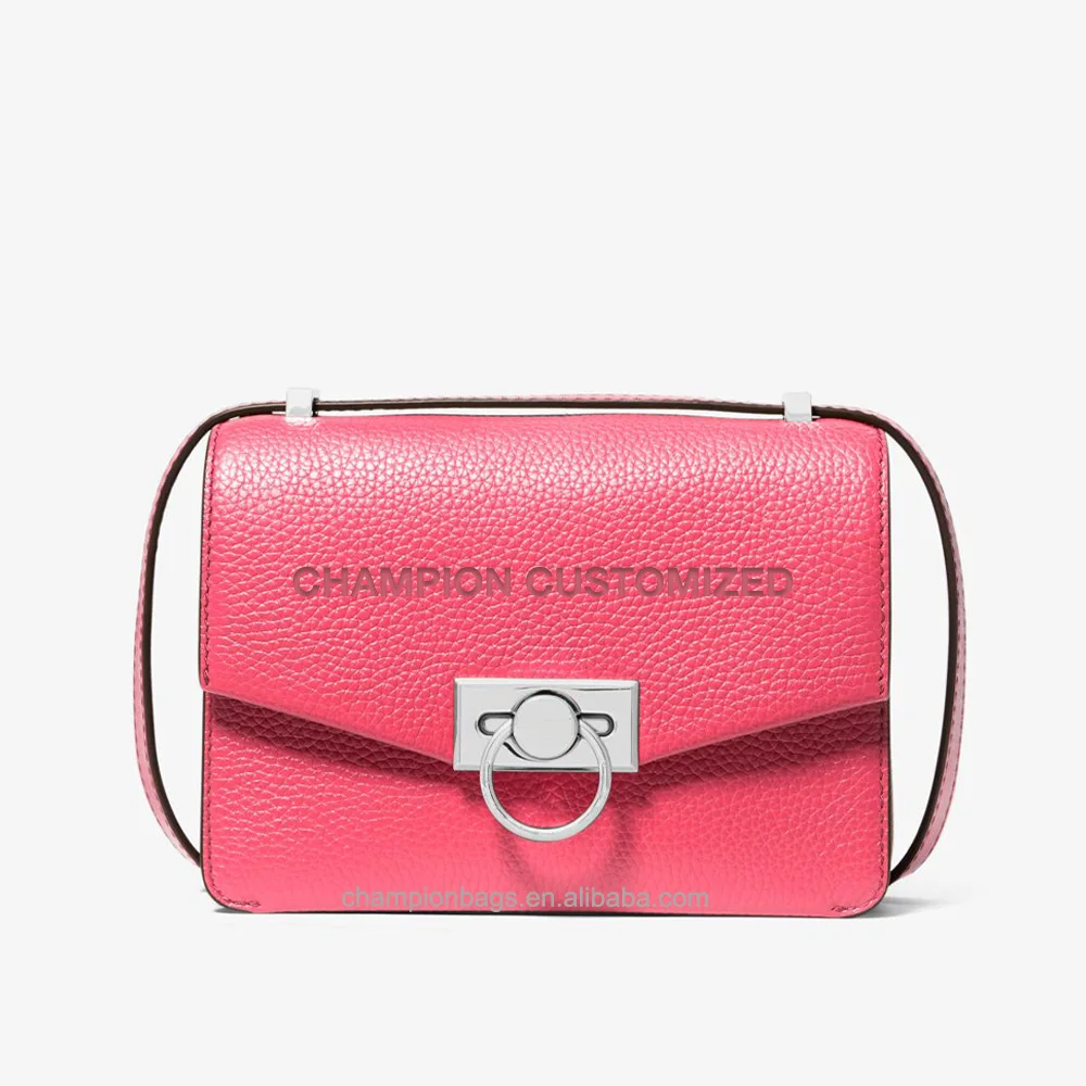 Custom Logo Vegan PU Pebble Leather Fashion Flap Crossbody Sling Shoulder Bag Ladies Handbag Purse for Women
