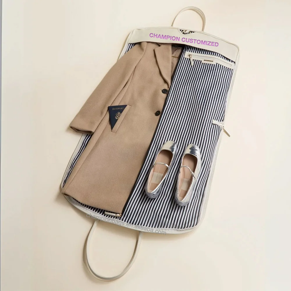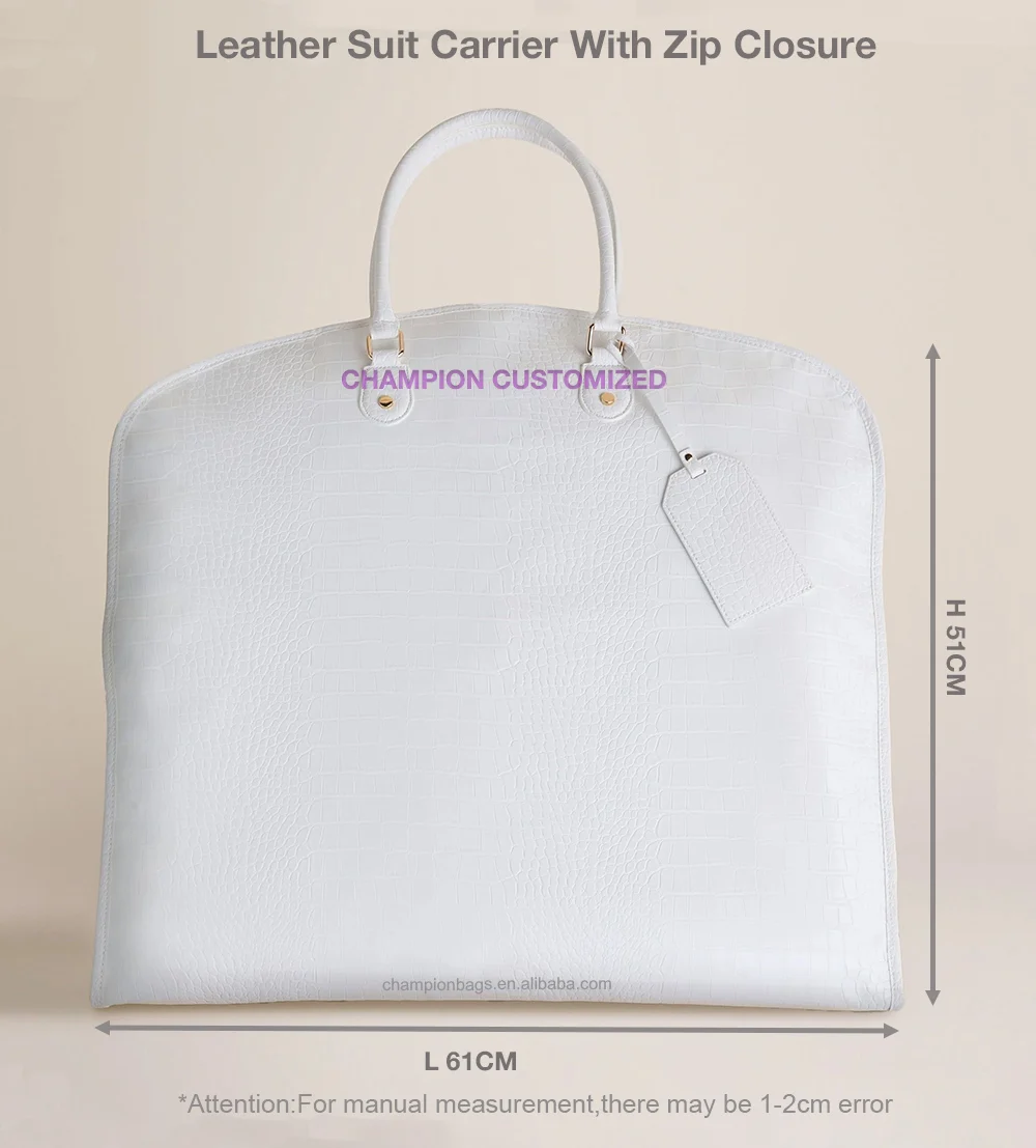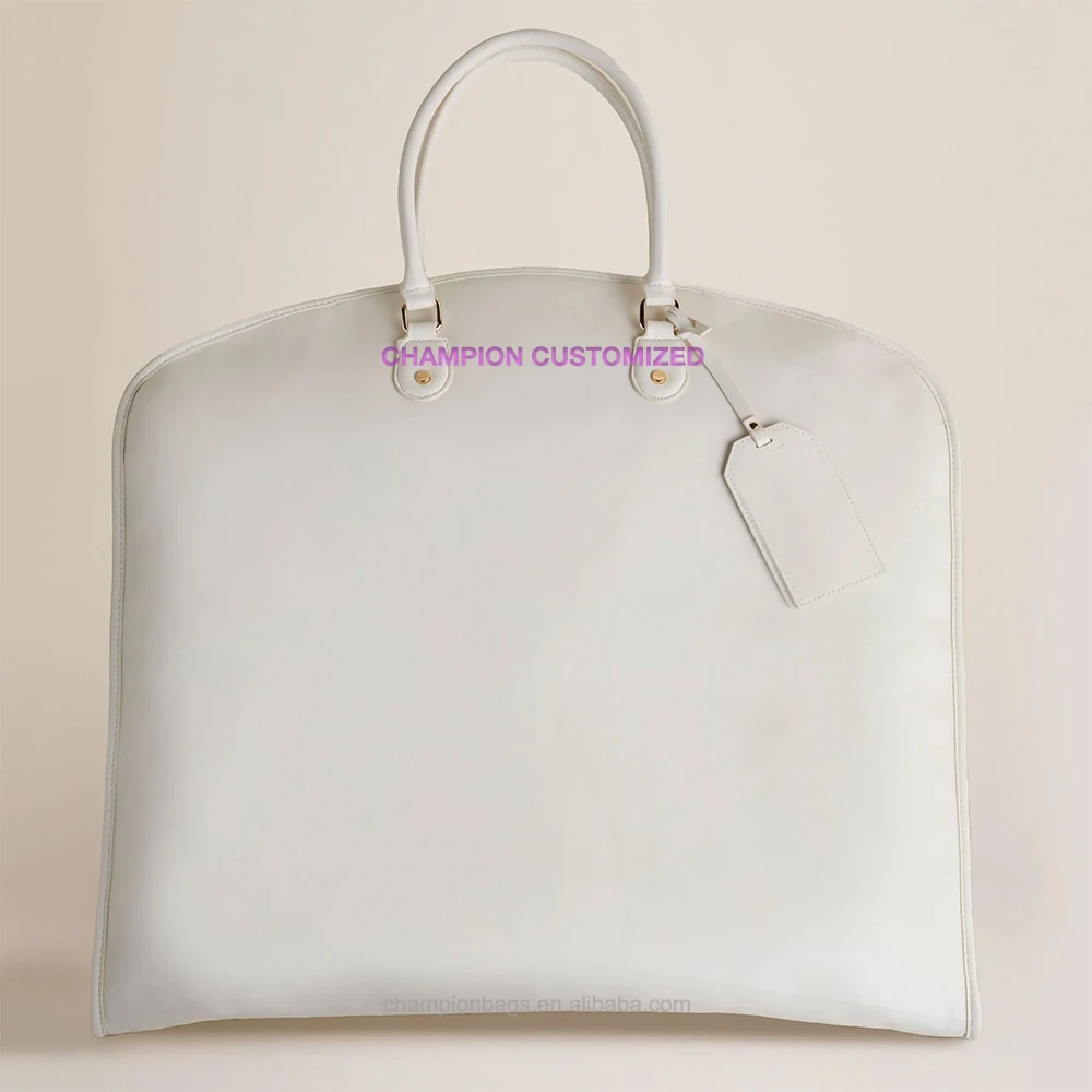 Custom Luxury White Vegan Leather Women Travel Duffle Garment Bag Fashion Dress Carrier With Zip Closure