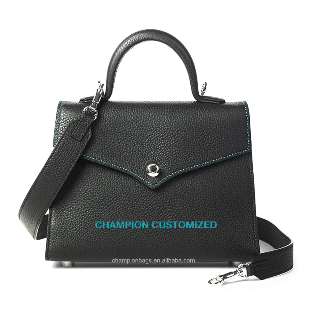 Custom Logo Fashion Pebble Leather Top Handle Flap Satchel City Office Hand Bag Women Handbag Purse