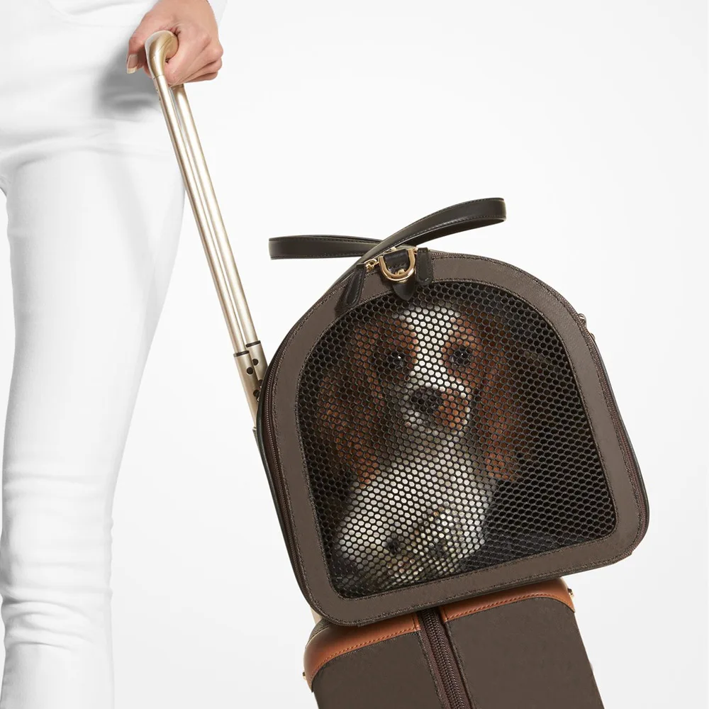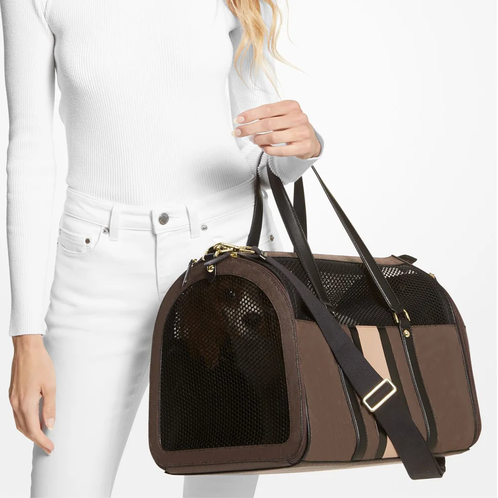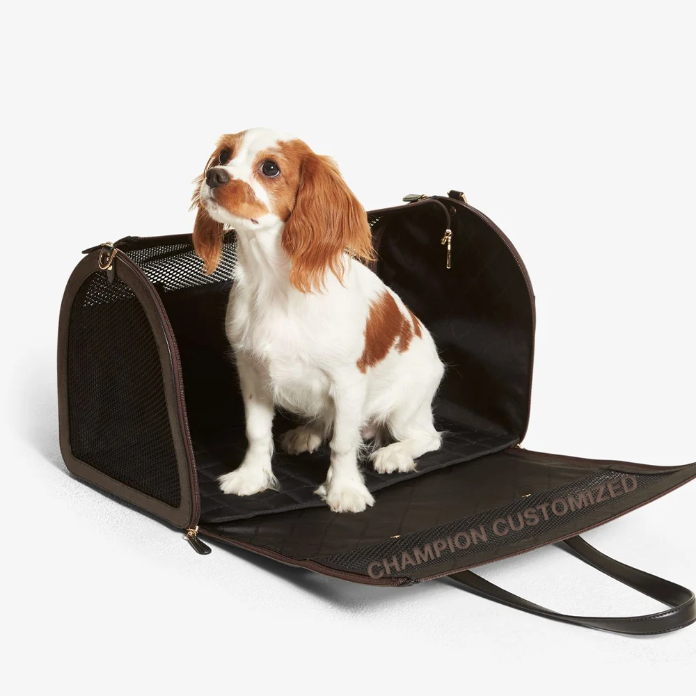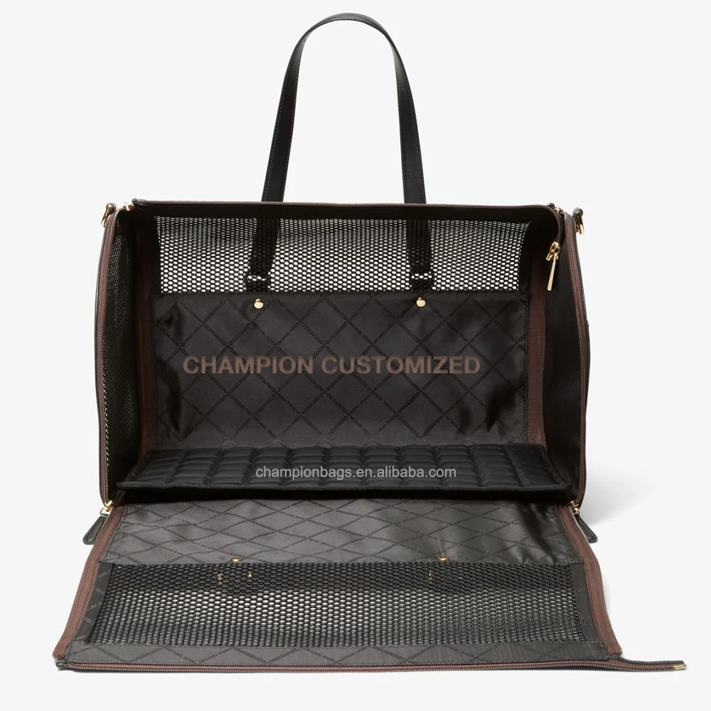 Custom Printed Logo Leather Luxury Portable Women Pet Dog Cat Travel Carrier Weekender Duffle Bag