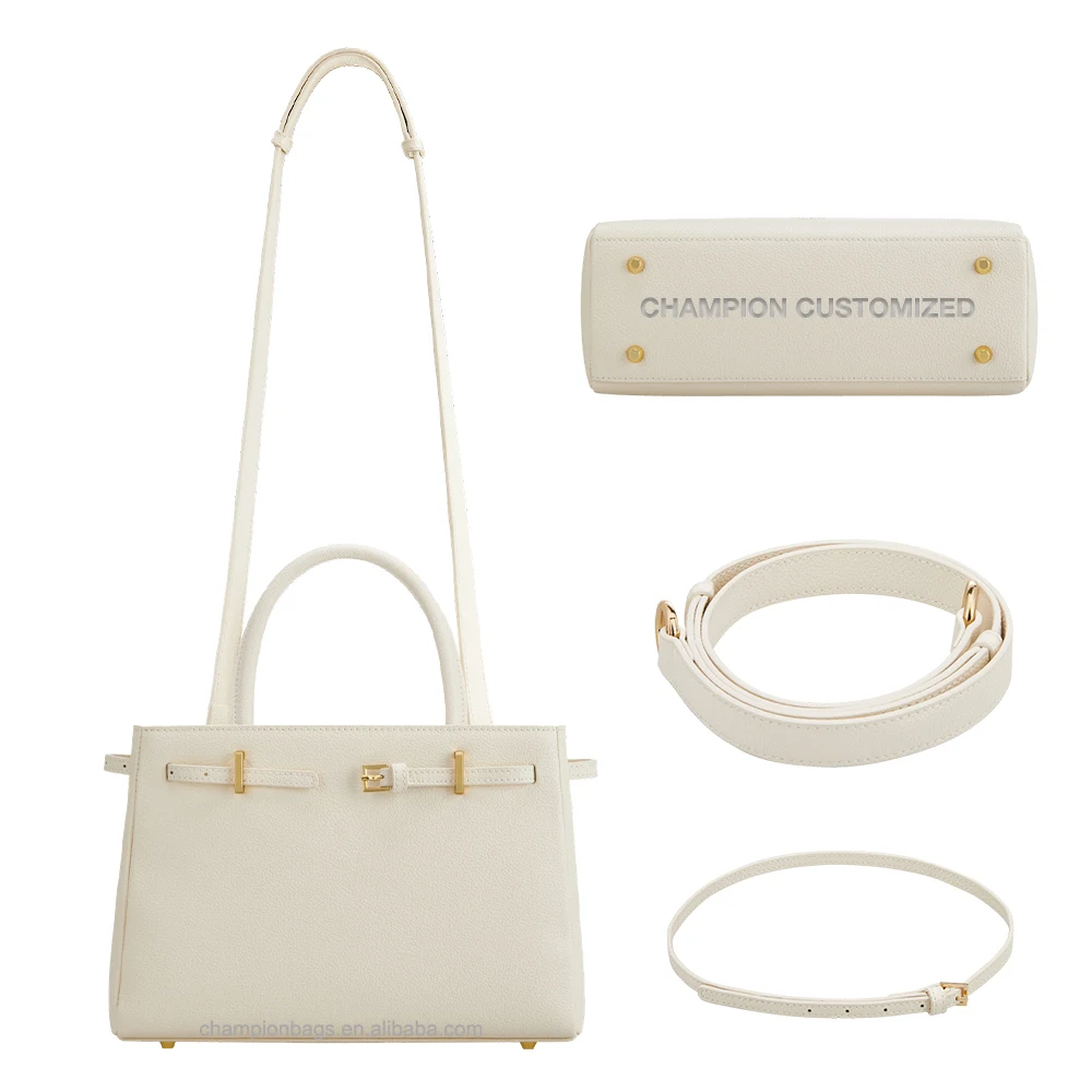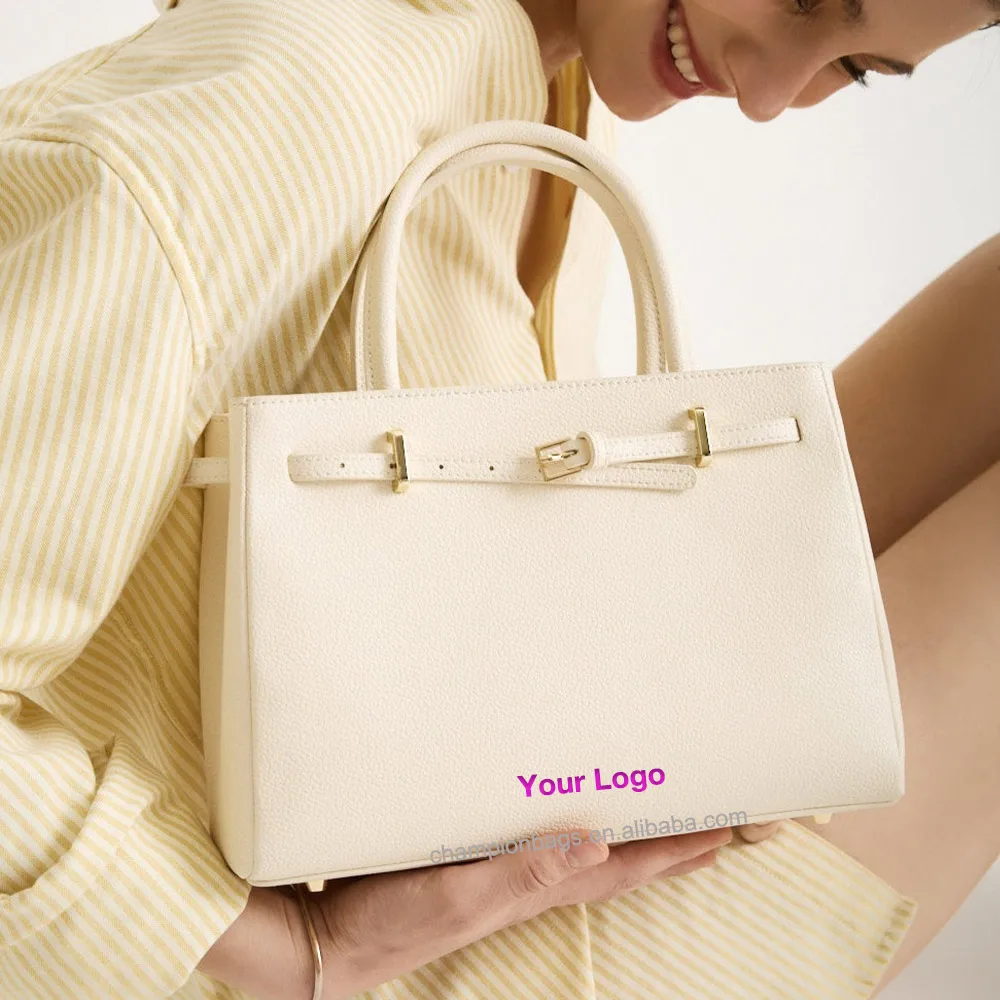 Custom Logo Fashion Pebble Leather Top Handle Satchel City Office Hand Bag Women Handbag Purse With Belt Deco