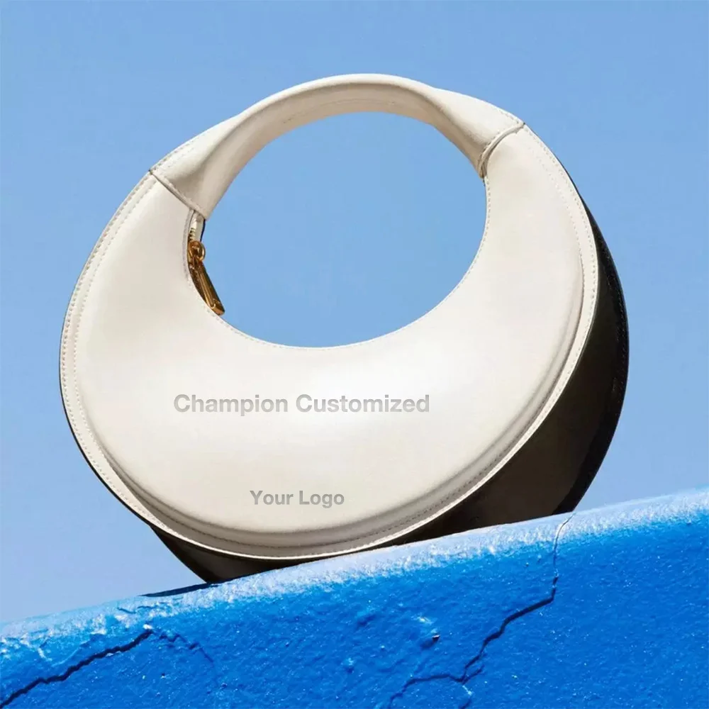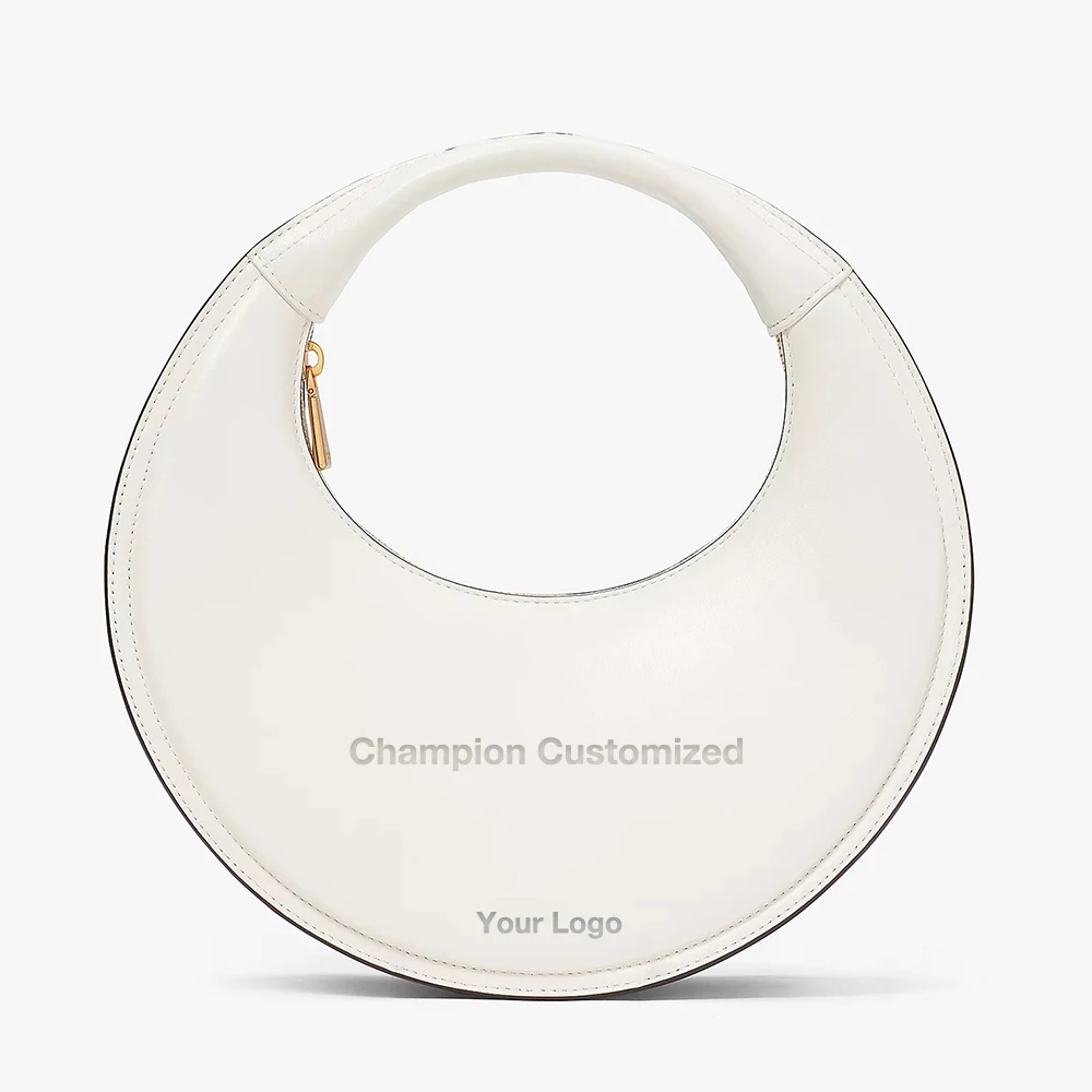 Custom Logo Smooth Leather Shoulder Top Handle Zip Round Satchel Bag Ladies Handbag Purse for Women