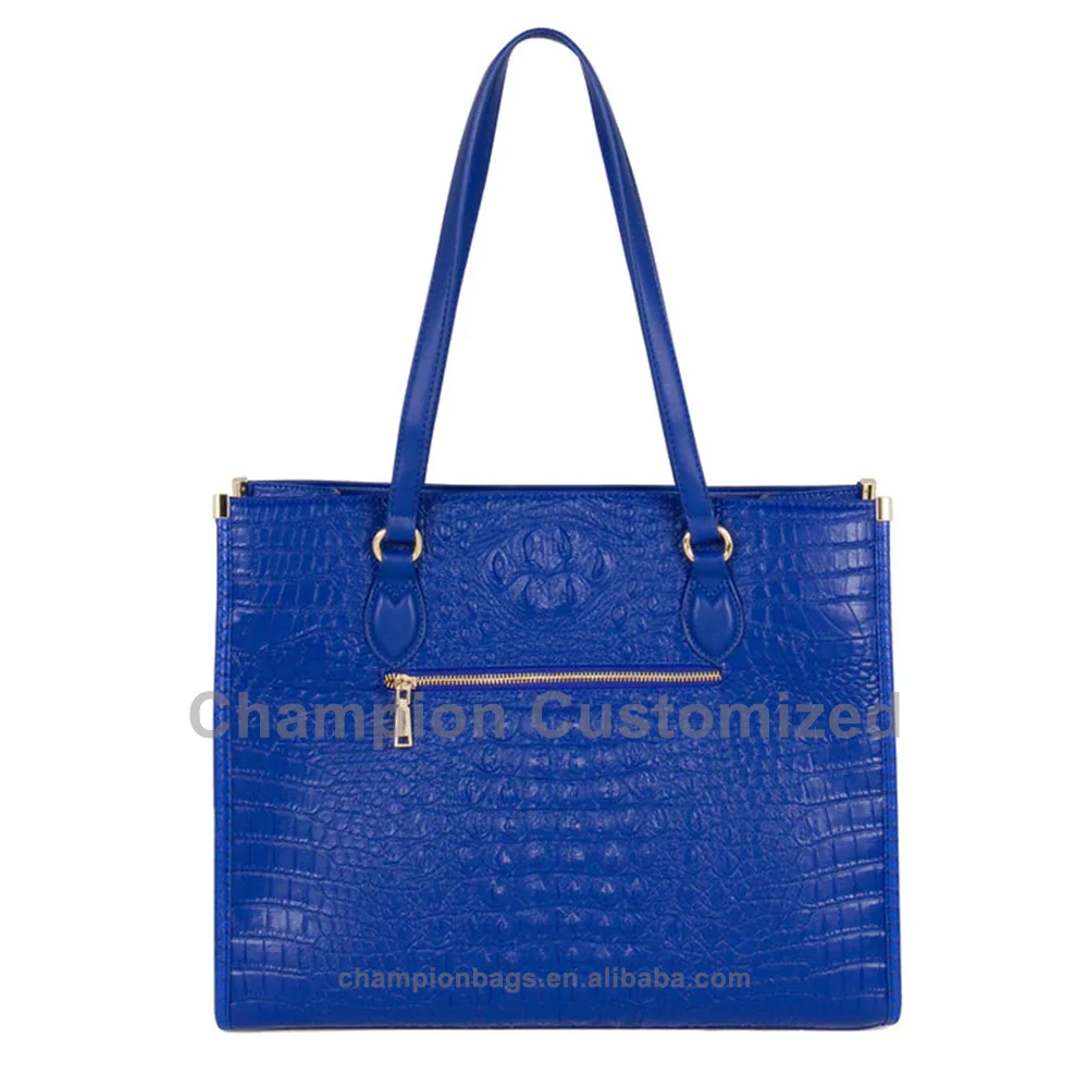 Custom Logo Royal Blue Croc Embossed Leather Ladies Tote Bag Women Shoulder Shopper Handbag Purse