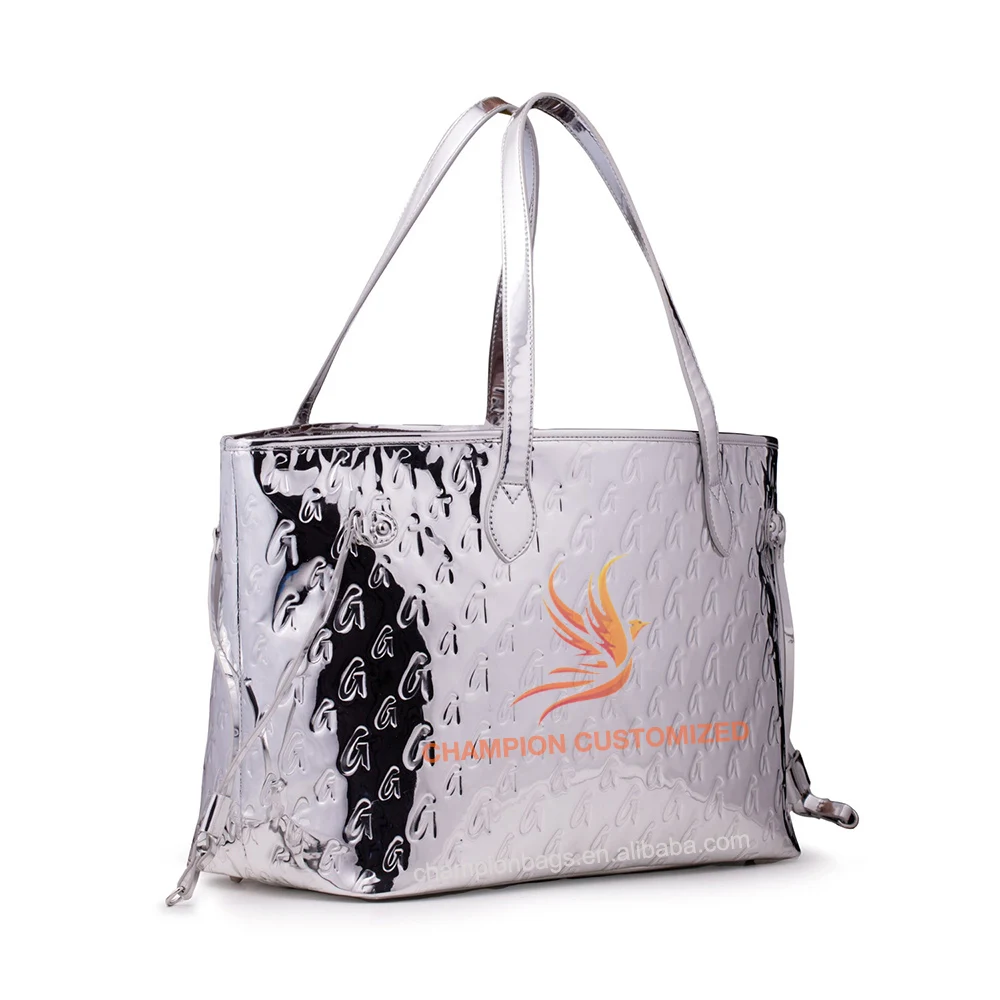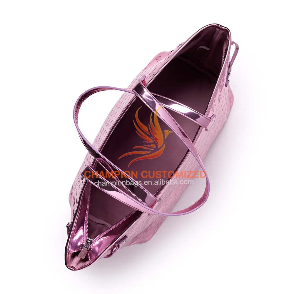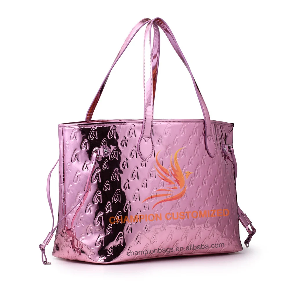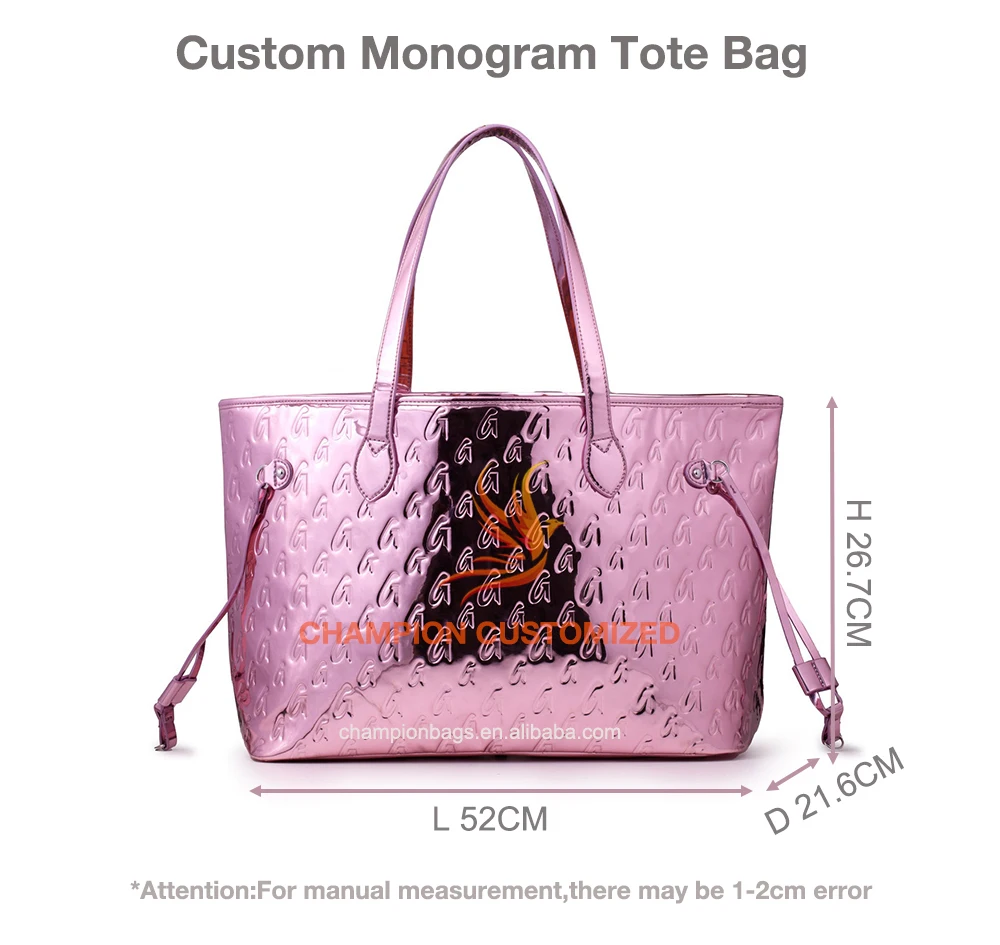 Customized Monogram Logo Metallic Rose Gold Leather Ladies Tote Bag Shoulder Handbag Purse for Women