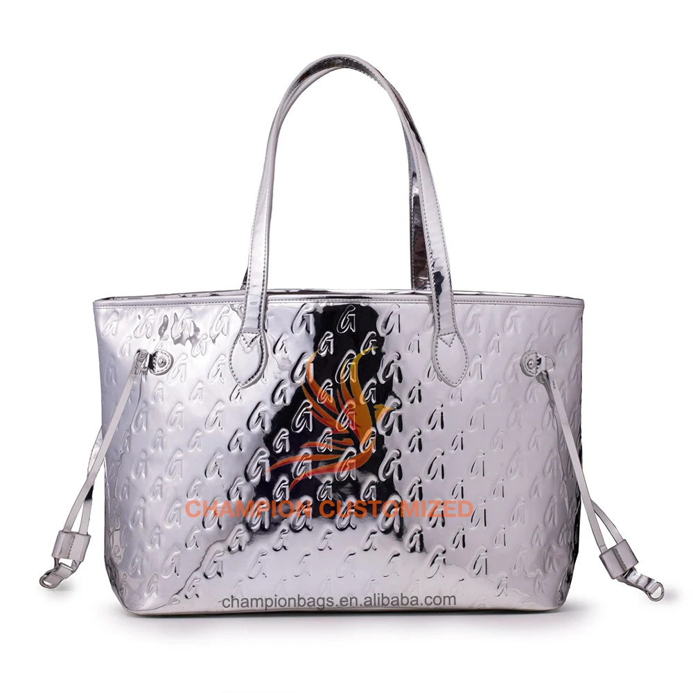 Customized Monogram Logo Metallic Gold Leather Ladies Tote Bag Shoulder Handbag Purse for Women