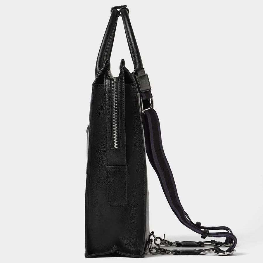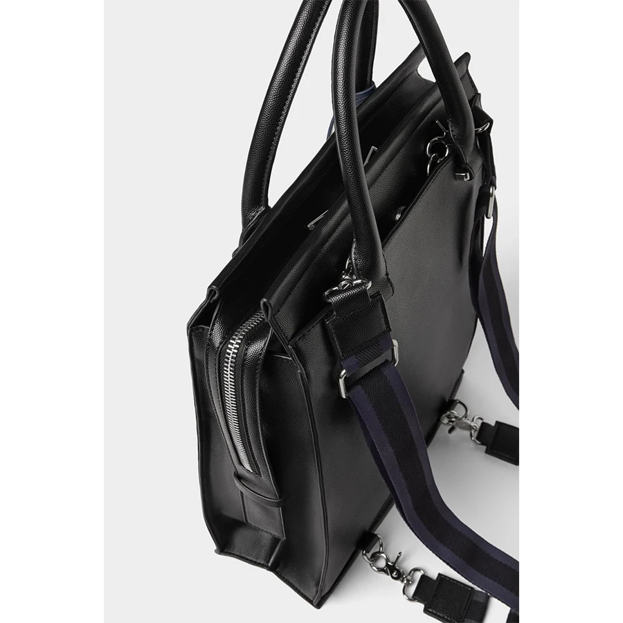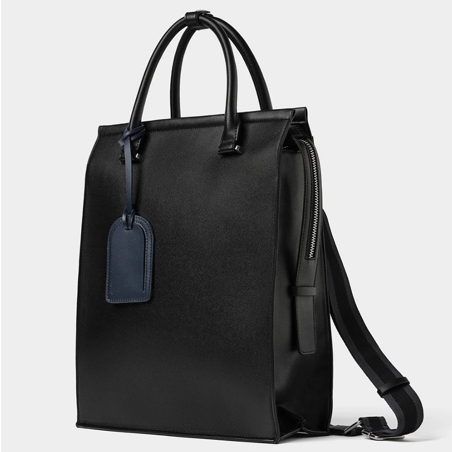 Custom Logo PU Leather Black Mens Laptop Business Travel Tote Backpack Bag Pack for Men