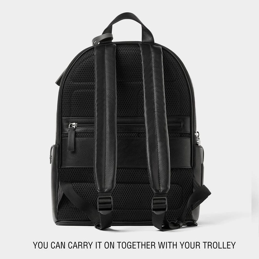 Custom Logo Leather Black Mens School Laptop Business Backpack Travel Bag Pack for Men