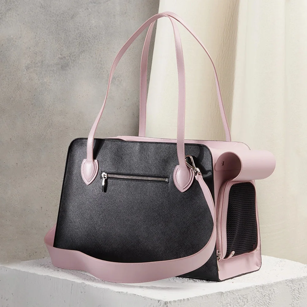 Custom Private Label Saffiano Leather Fashion Travel Small Pet Dog Cat Carrier Tote Bag Purse