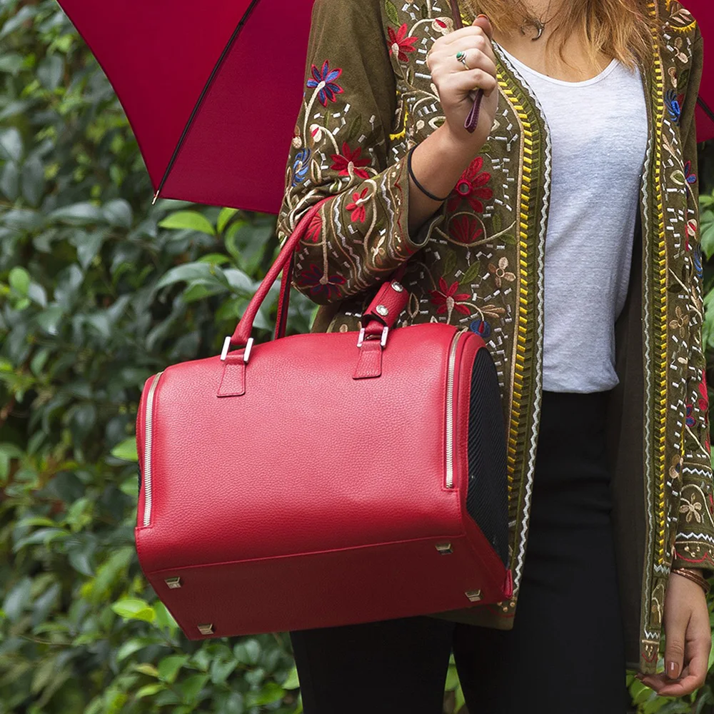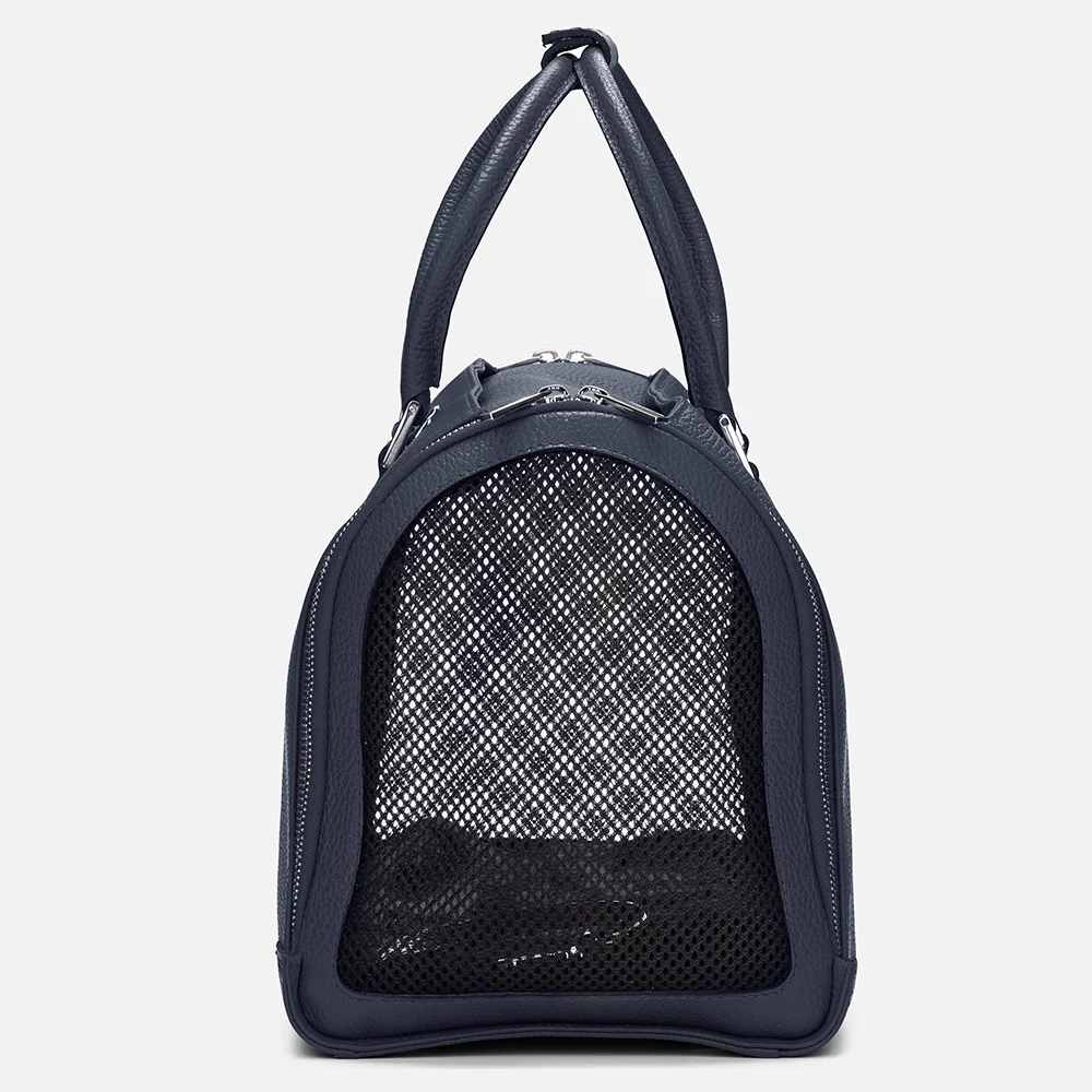 Custom Logo Navy Leather Luxury Fashion Women Pet Dog Cat Carrier Tote Bag Hand Purse