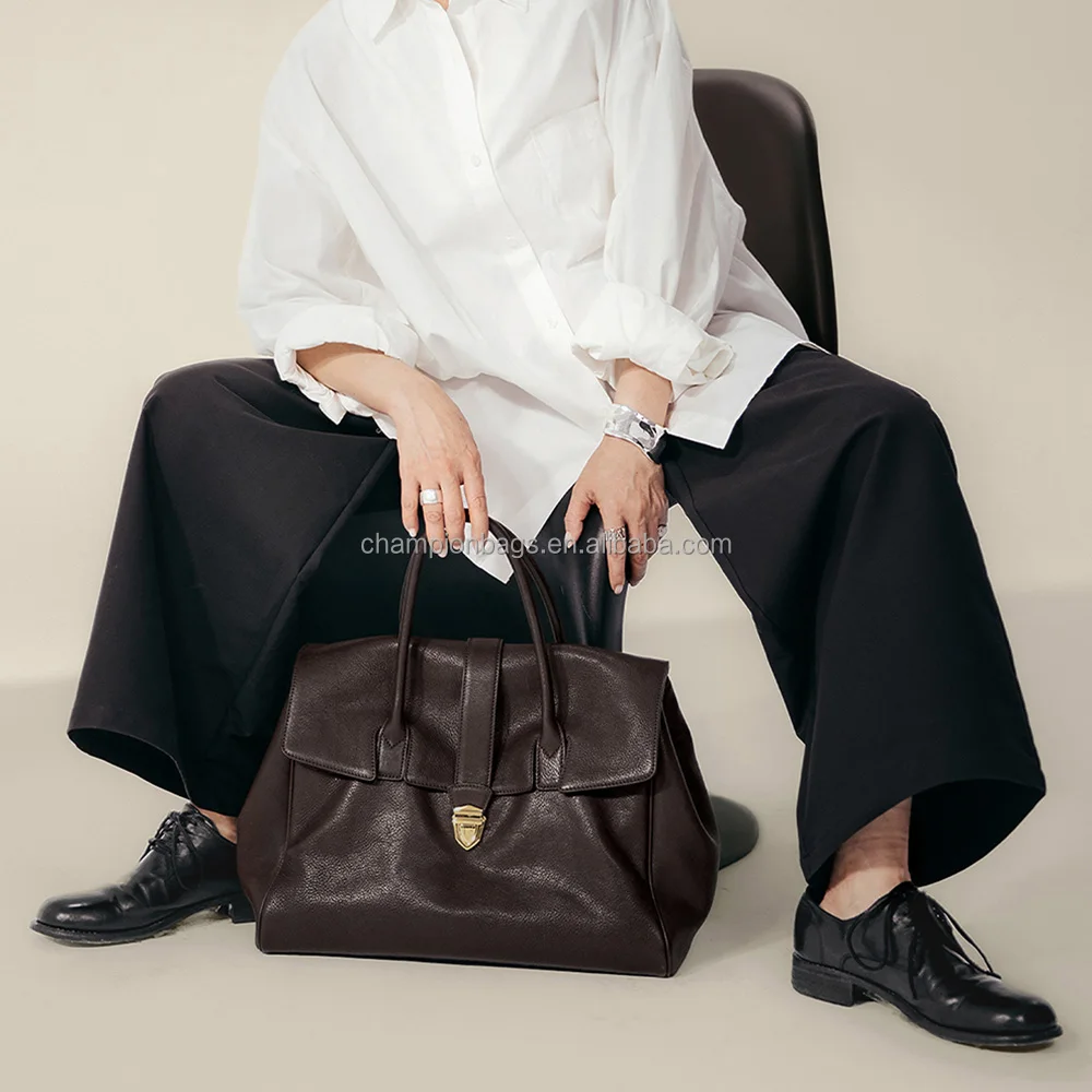 Wholesale Vantage Genuine Vegetable Tanned Leather Ladies Classic Top Handle Large Handbag Purse for Women