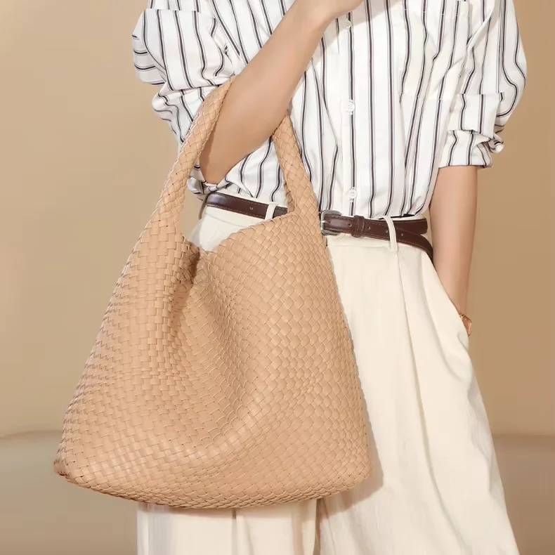 2026 Trending New Handmade Original Woven PU Leather Women's Tote Bag Portable Tote Weaving Shoulder Bag Factory Wholesale