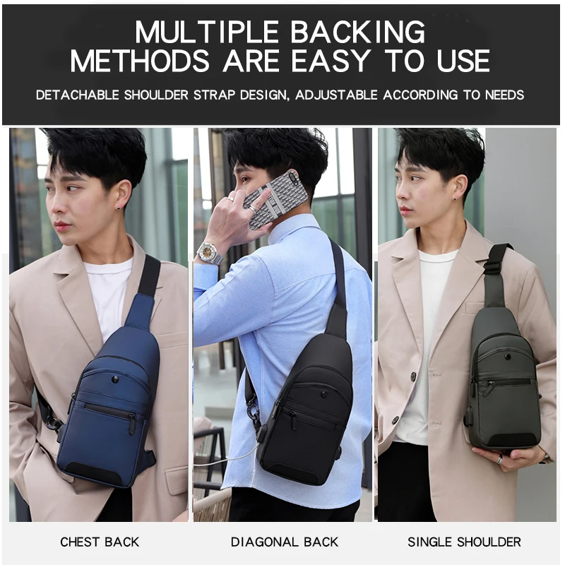 OMASKS Custom Mens Crossbody Chest Bags Brand Logo Mientras Que Bandolera Shoulder Bag Man Travel Commute Messenger Bag