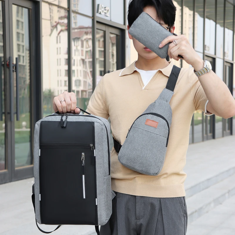 Large Capacity School Bag Set High Quality Business Waterproof Backpack Factory Custom USB Computer Bag