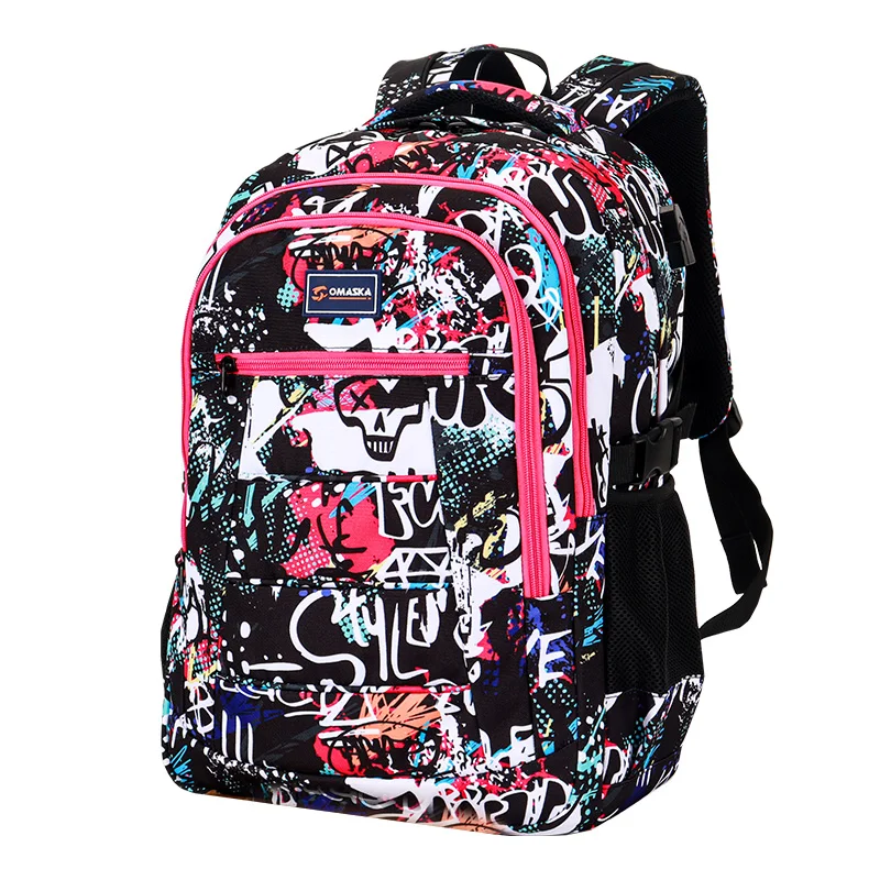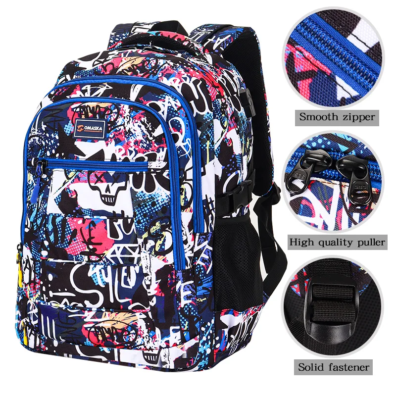 For OMASKA Custom 17 Inch Nylon Backpack for Teenagers Fashionable Waterproof School Bag with Polyester Lining and Zipper