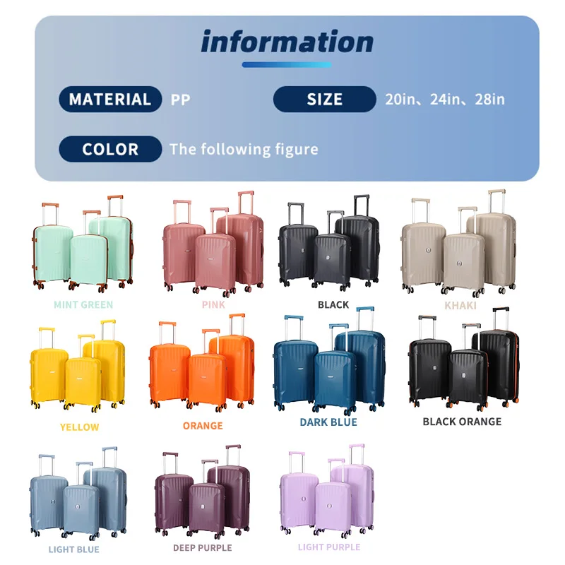 OMASKA Custom LOGO PP Hard Shell Set 20 24 28 Inch Men Trolley Bag Fashion Travel PP Trolley Suitcase