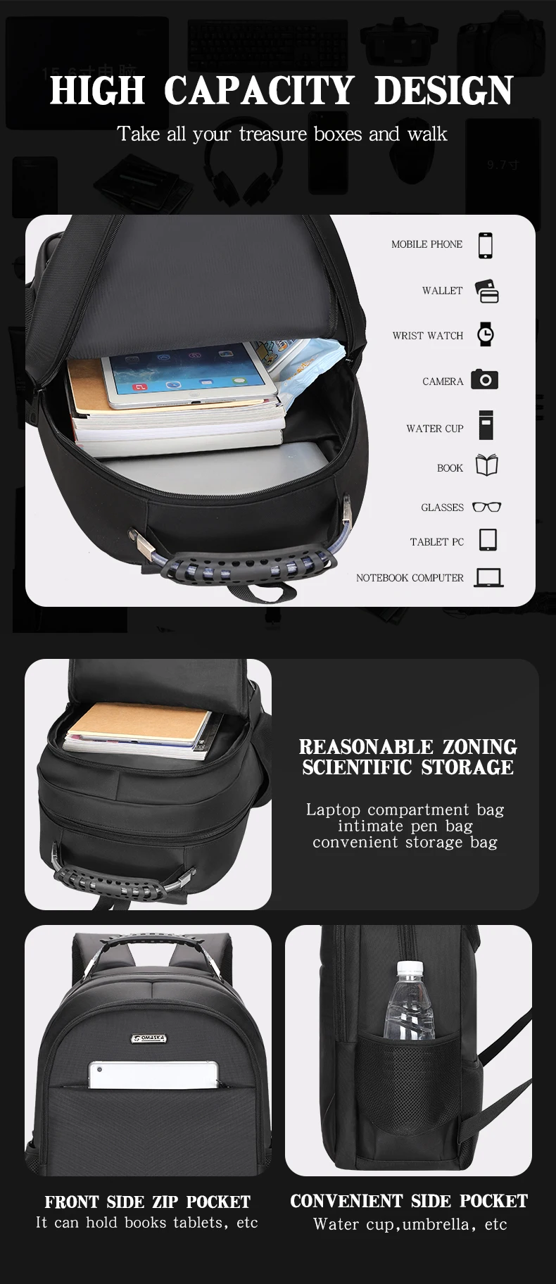 OMASKA Wholesale Notebook Bag 17 Inch Backpacks Office Computer Bag Laptop Backpack