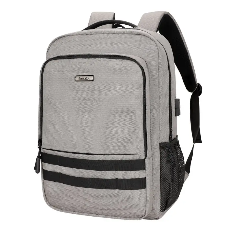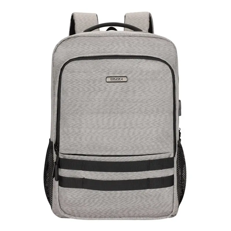 For OMASKA Wholesale Mens Large Capacity Laptop Backpack Waterproof USB Lining in Polyester Zipper Closure
