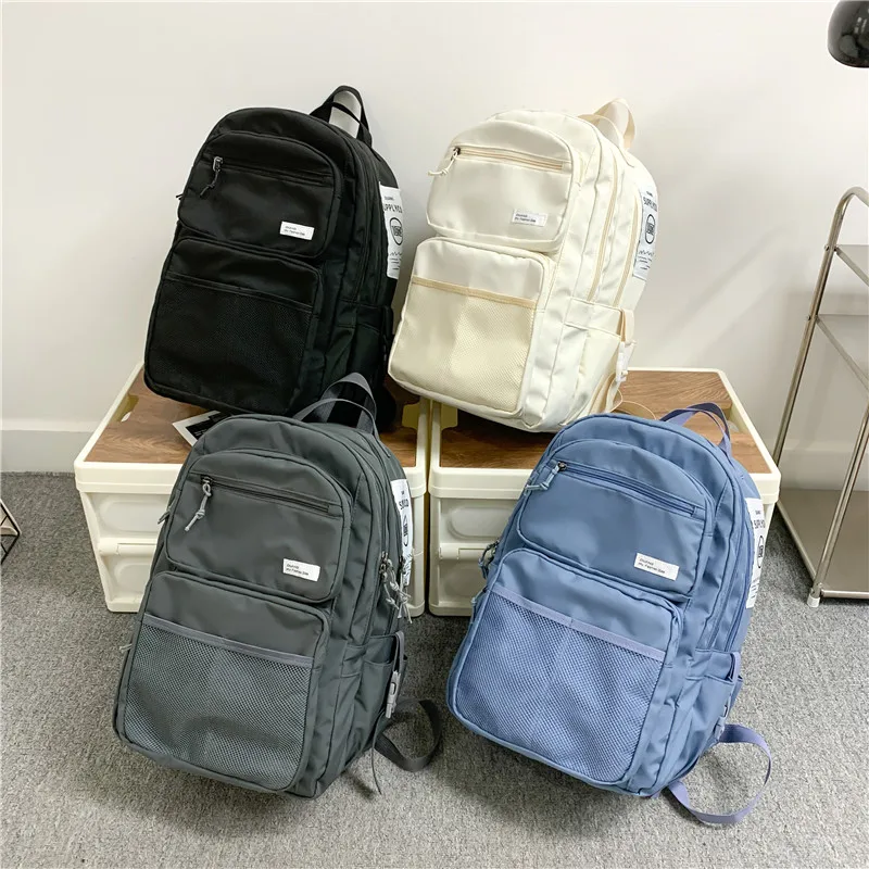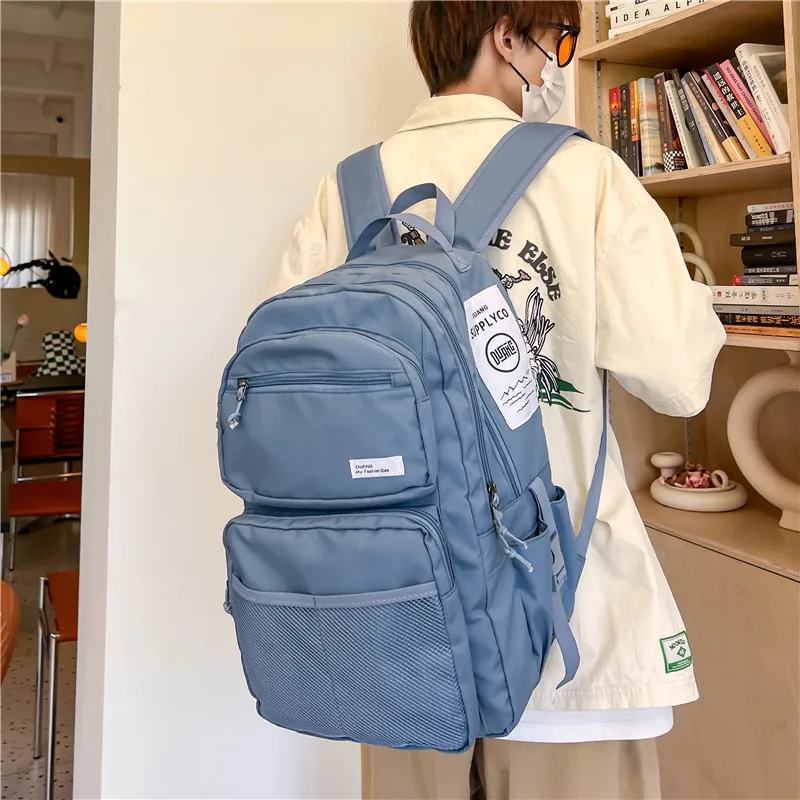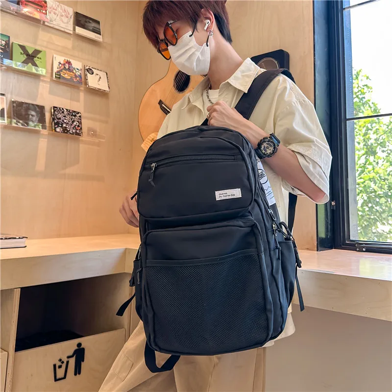 Omaska Custom Logo 17 Inch Nylon School Backpack for Men Teenagers Waterproof Geometric Pattern Zipper Fashionable Students Bag