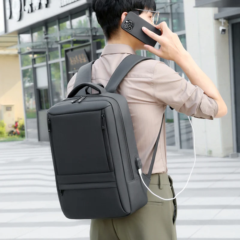 OMASKA Custom Logo Waterproof Business Bag 17 Inch Grey USB Nylon Men Laptop Backpacks
