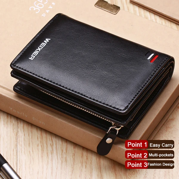 New Trend PU Leather Men's Short Wallet with 7 Card Slots Popular Money Clip Wallet