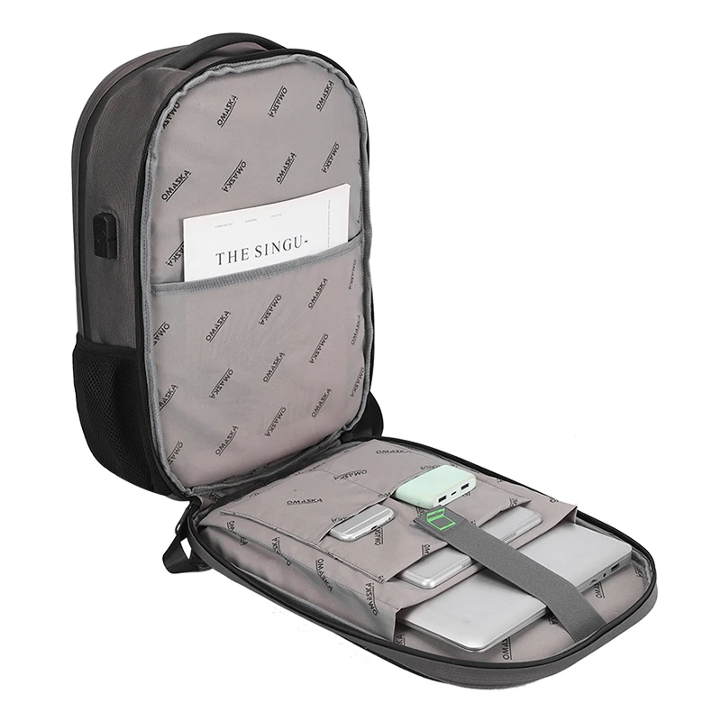 For OMASKA Custom Men's Rucksack Waterproof USB Charging PC Laptop Backpack with Polyester Lining Zipper Closure