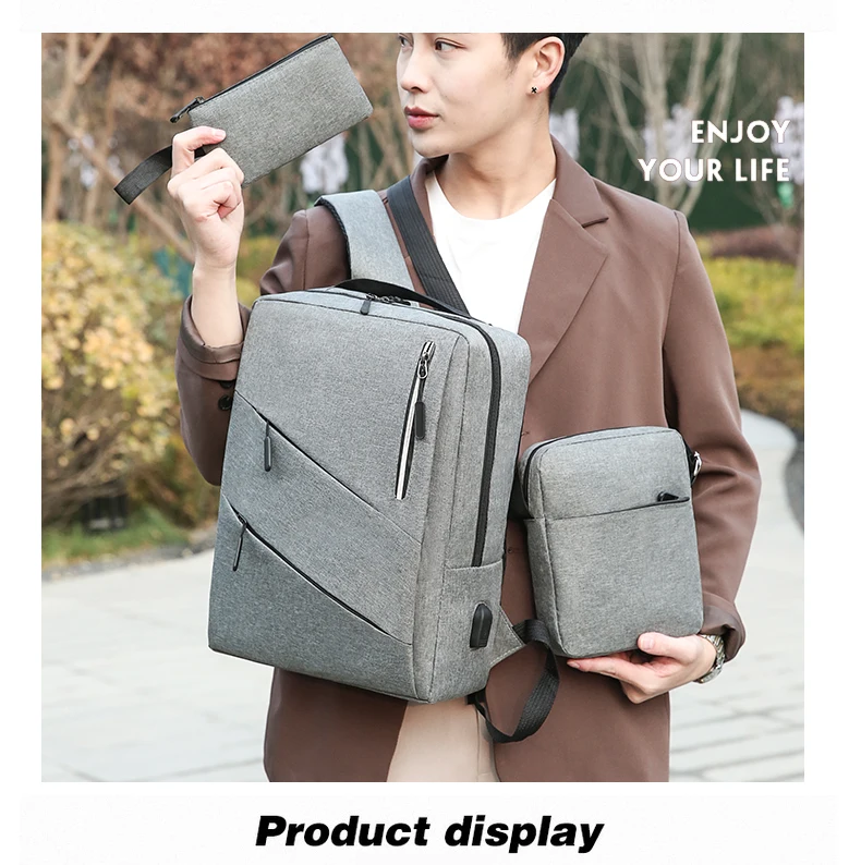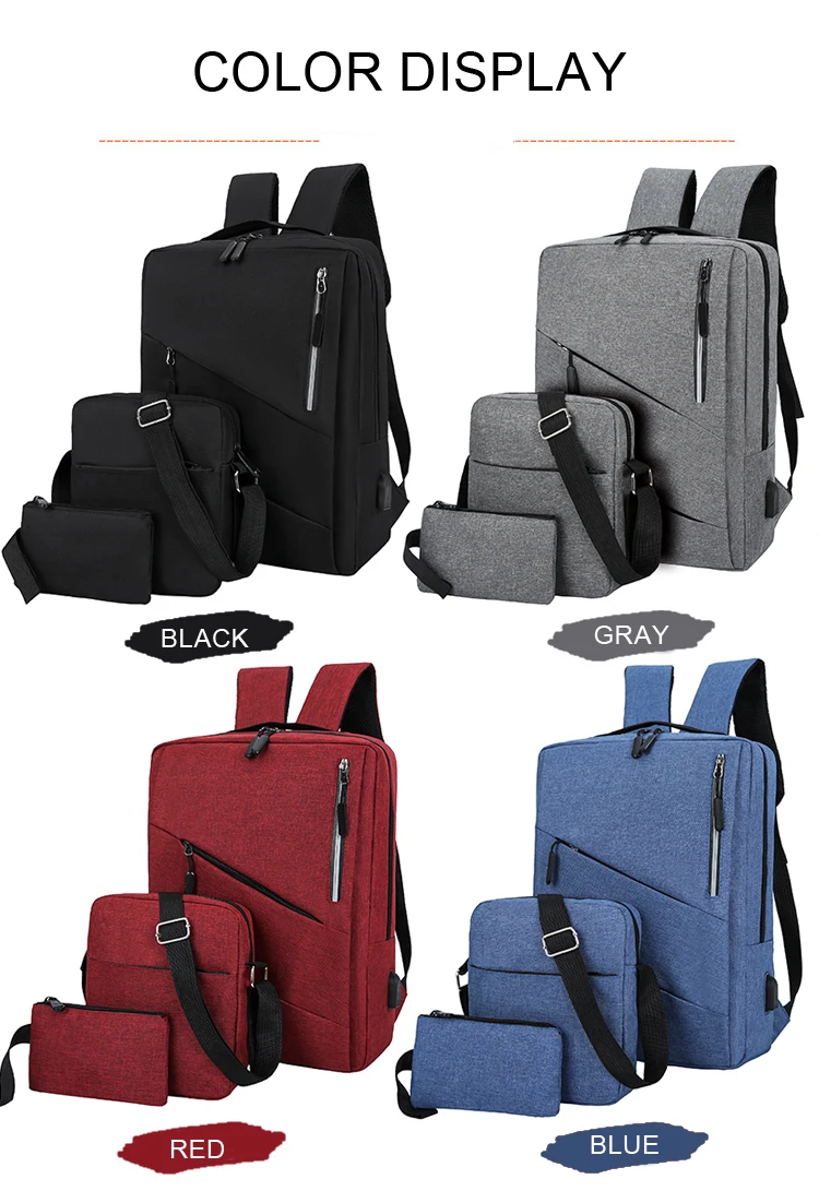 Backpack Set 3 Pcs/set Male Shoulder Bag Teenagers Man Student Book Bag