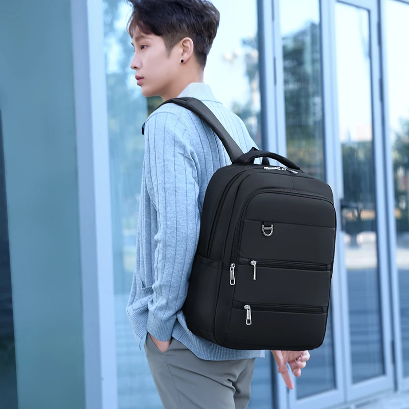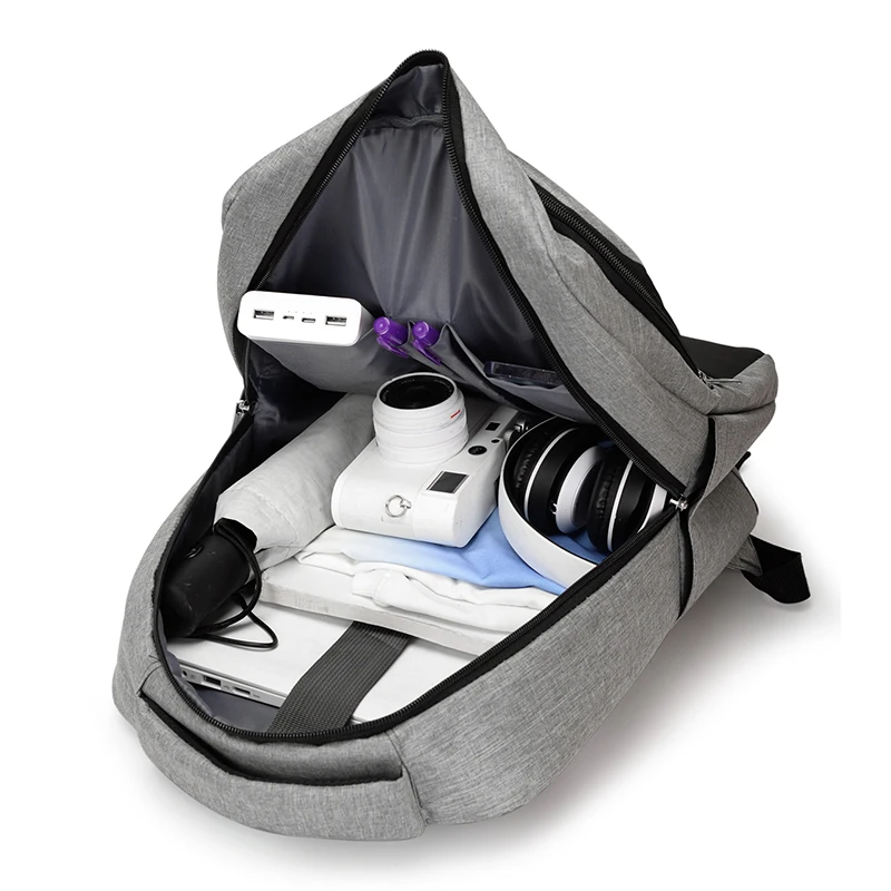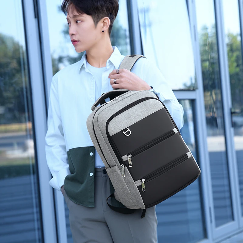 Lightweight Men's USB Charging Backpack Casual Outdoor Travel School Bag Zipper Closure Anti-Theft Feature Polyester Letter