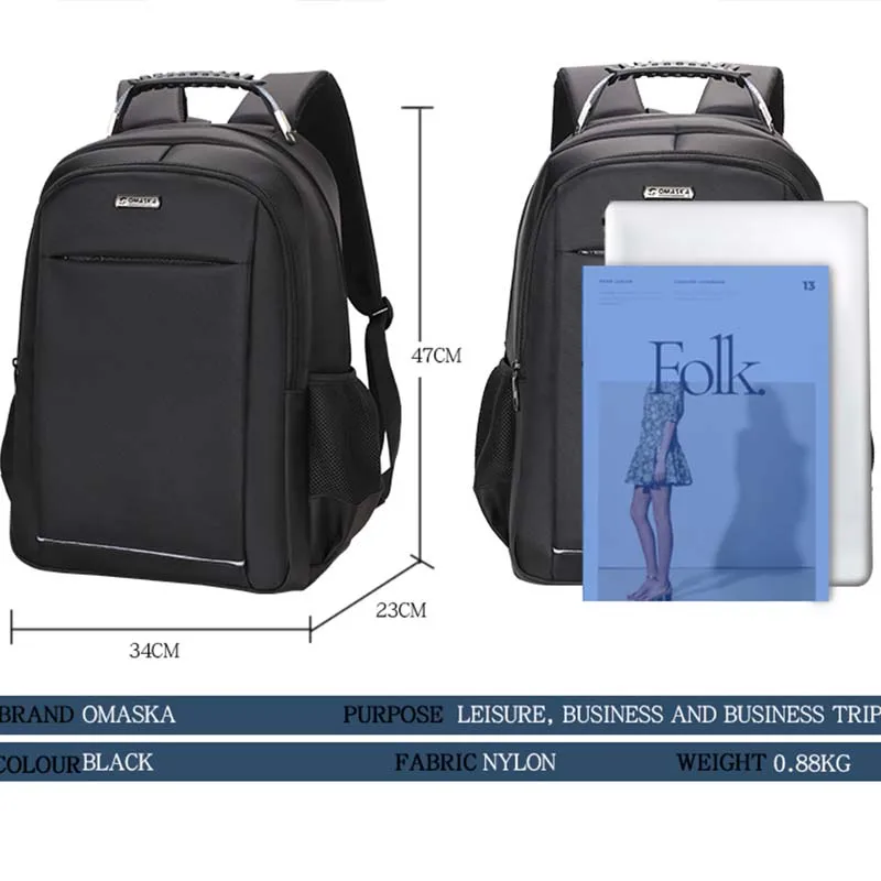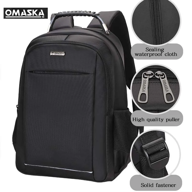 For OMASKA Customized 18 Inch Nylon Waterproof Business Backpack Laptop Men's School Bags Featuring Polyester Zipper Men's