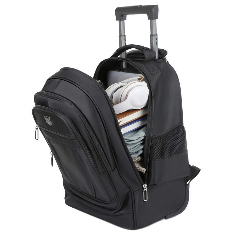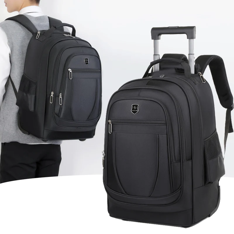 Traveling Luggage With Trolley and Backpack Features Nylon Laptop Backpacks Expandable Rod Trolley for Backpack