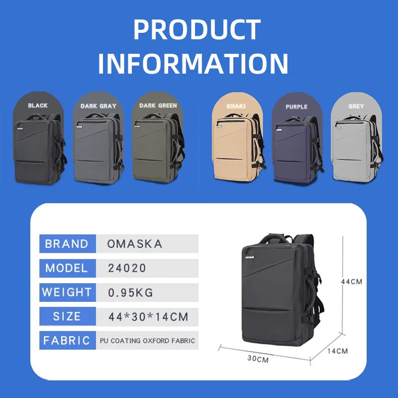 OMASKA Unisex Computer College School Bag Smart Laptop Expansion Waterproof Backpack