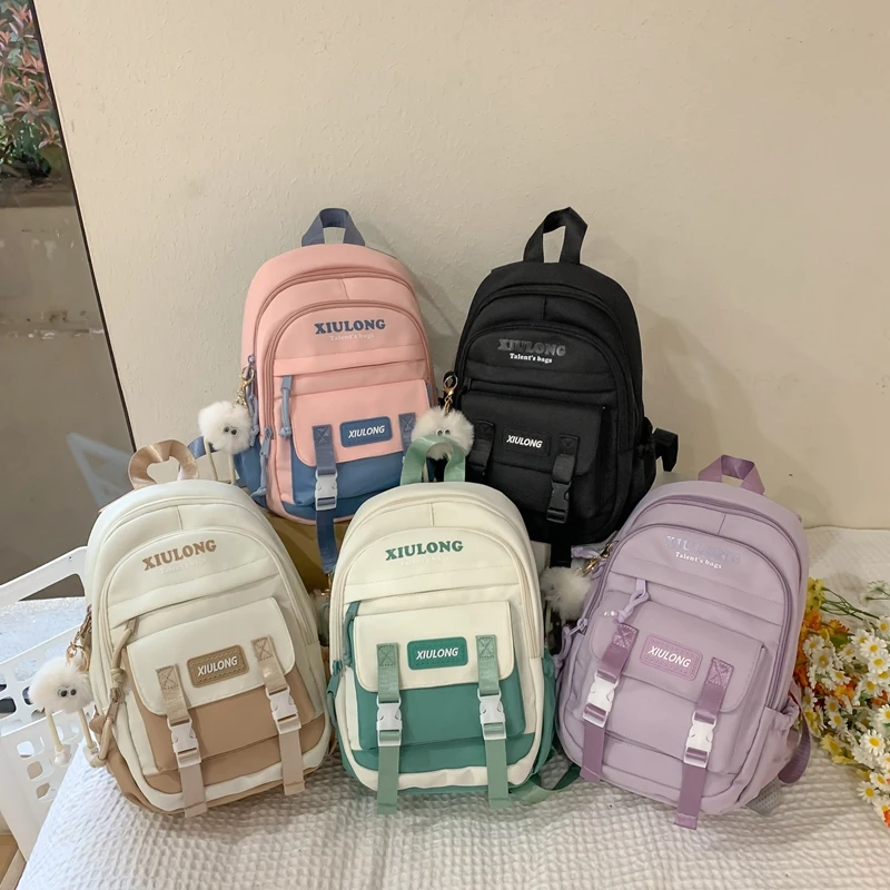 Omaska Children Teenager Backpack Fashion Large Capacity 17 Inch Students Backpack Women Waterproof Polyester Schoolbag