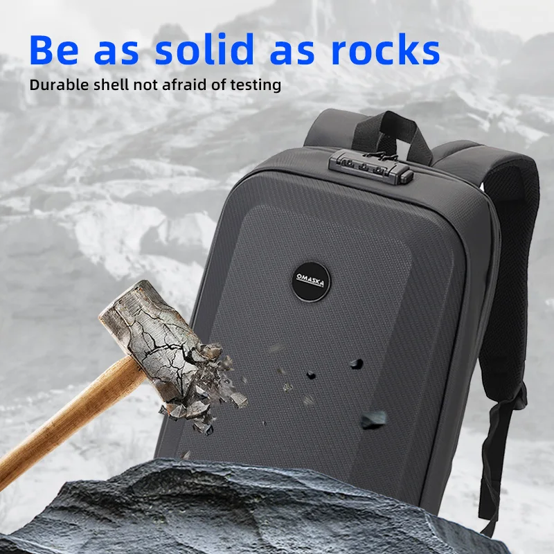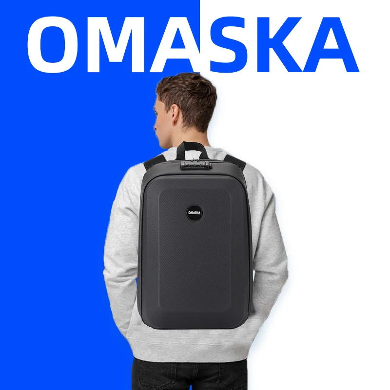 For Omaska Custom 17 Inch Nylon Business Laptop Backpack Durable Waterproof Computer Bag Geometric Pattern Zipper Polyester Men