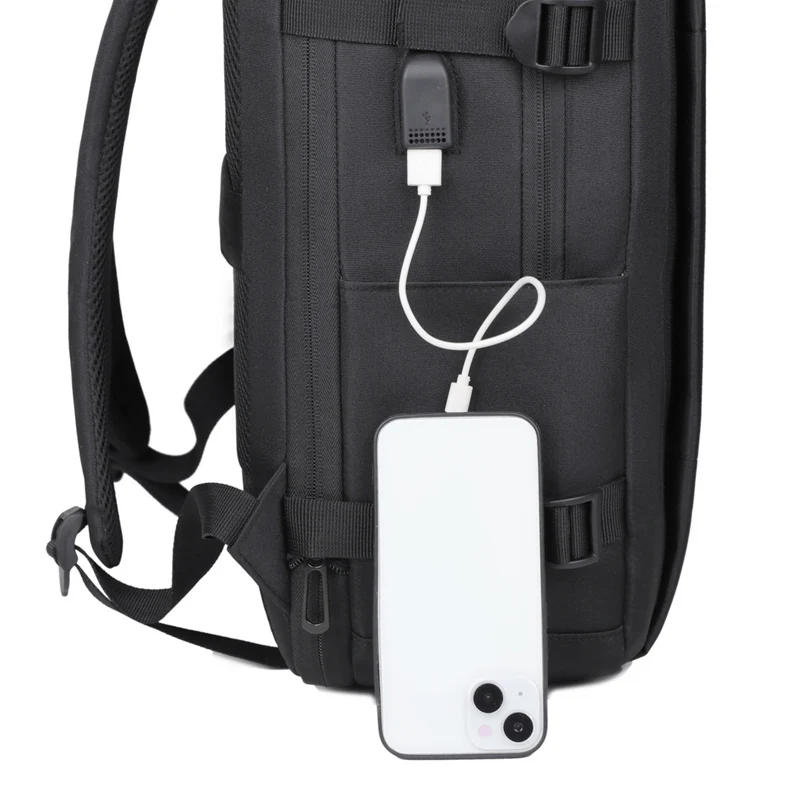 Fashionable Waterproof Business Mochila USB Charging Port Expandable Travel Zipper Laptop Backpack