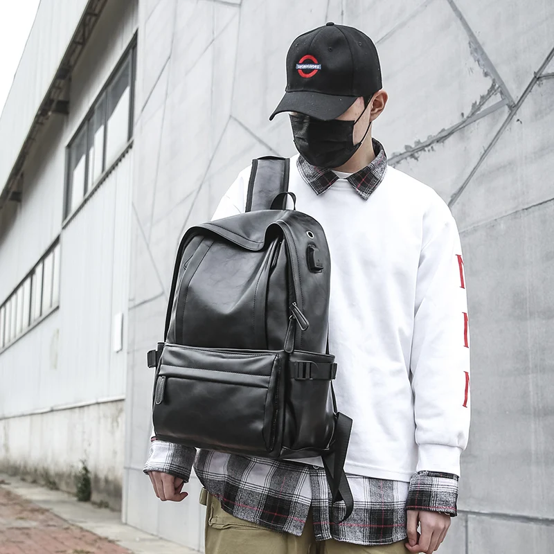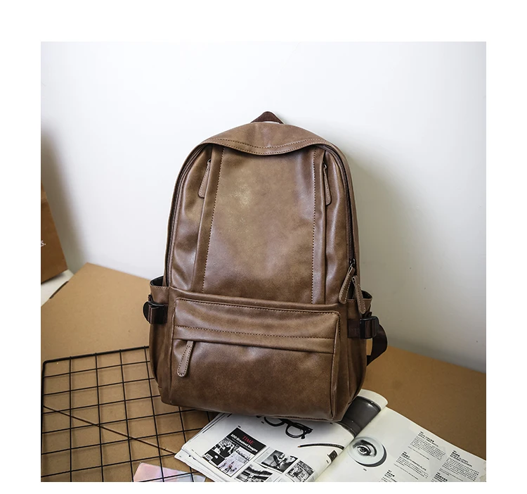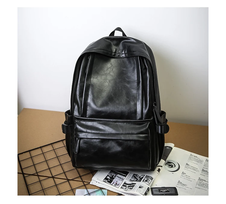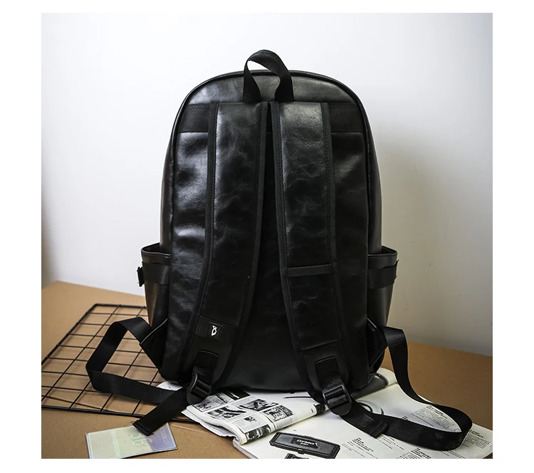 For OMASKA College Unisex Laptop Backpack PU Waterproof Zipper Fashion 17 Inch Arcuate Shoulder Strap Below 24L Capacity