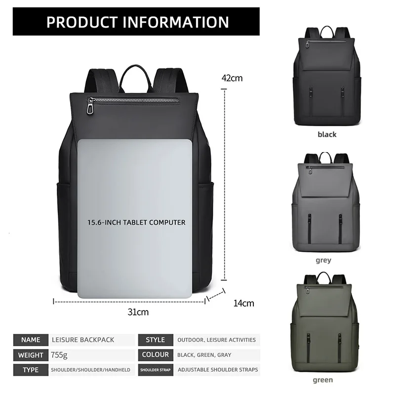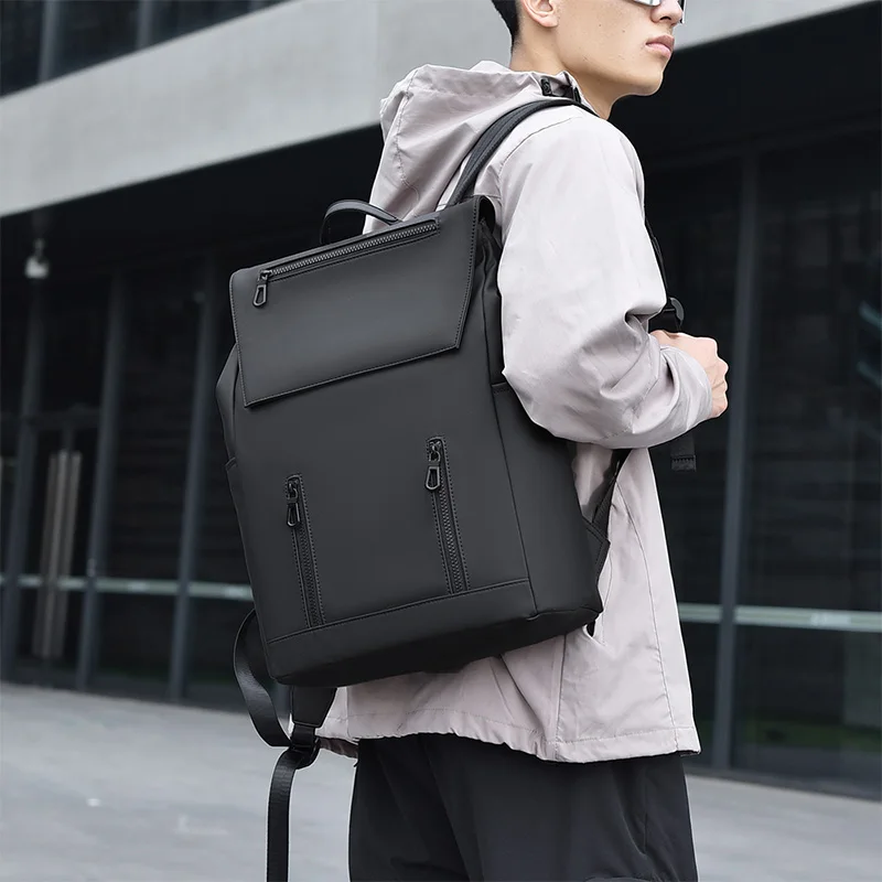 Wholesale 17 Inch Zipper Laptop Backpack Large Capacity Waterproof Mochila with Polyester Lining for Men PU Material