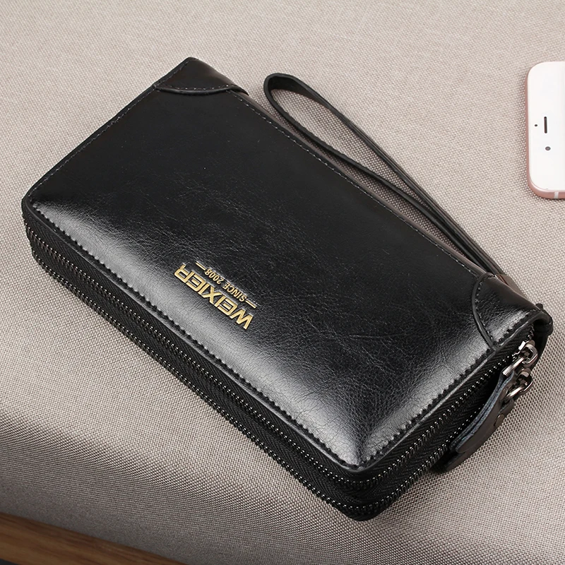 Wholesale Classic PU Leather Men Clutch Bag Oil Wax Surface Long Wallet