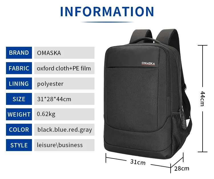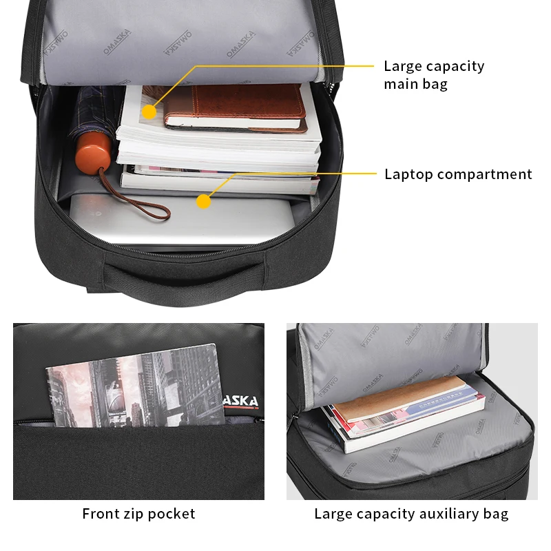 Omaska Custom logo Mochila Men Business Waterproof Backbag Black Usb Smart Travel Bagpack Laptop Back Bag Pack Backpack