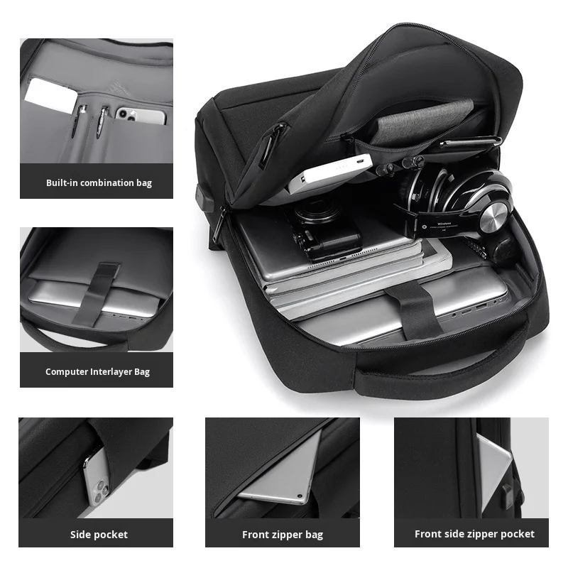For Oxford Polyester Large Capacity Computer Backpack Fashionable Waterproof Zipper 17 Inch Unisex Business Backpack