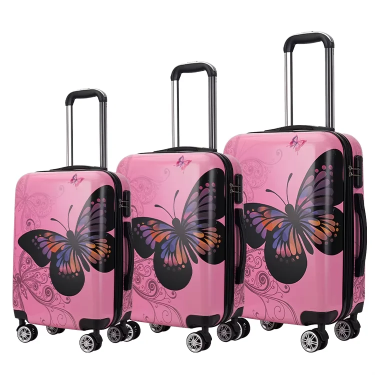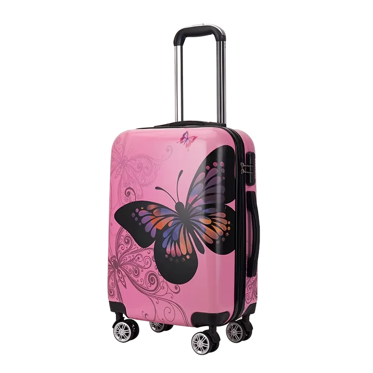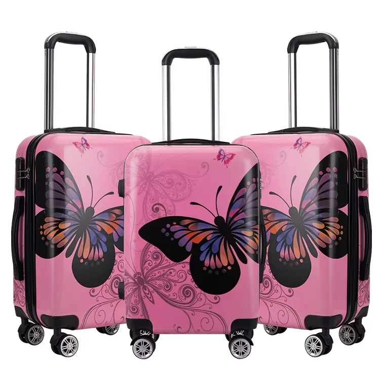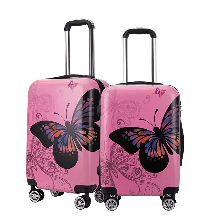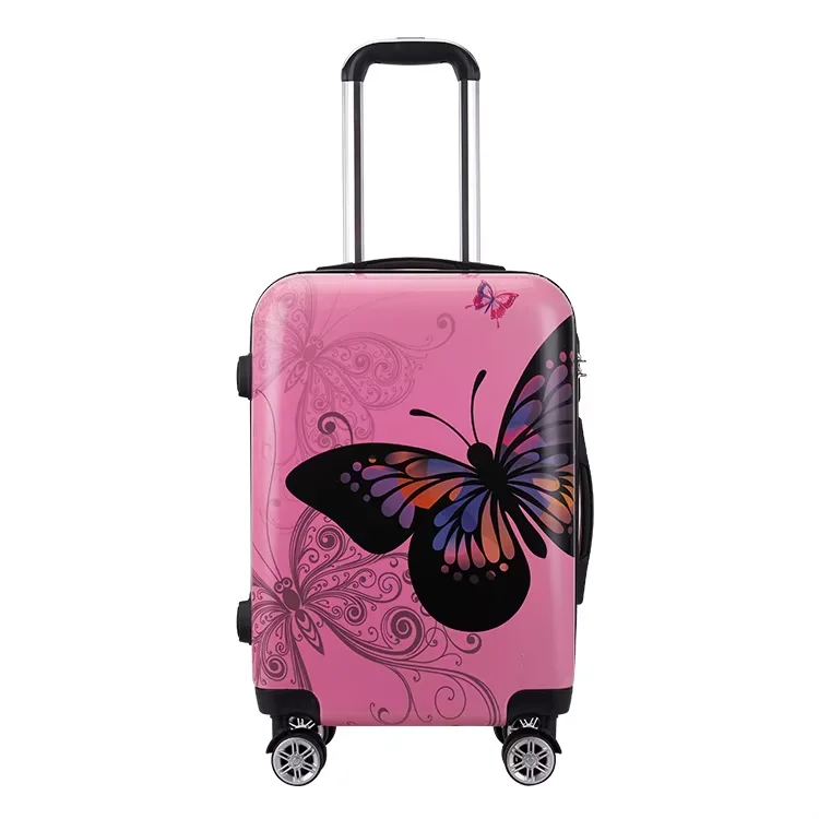 High Quality PC Material Pink Butterfly Print Pattern Waterproof Luggage Cases Large Capacity Portable Boarding Luggage