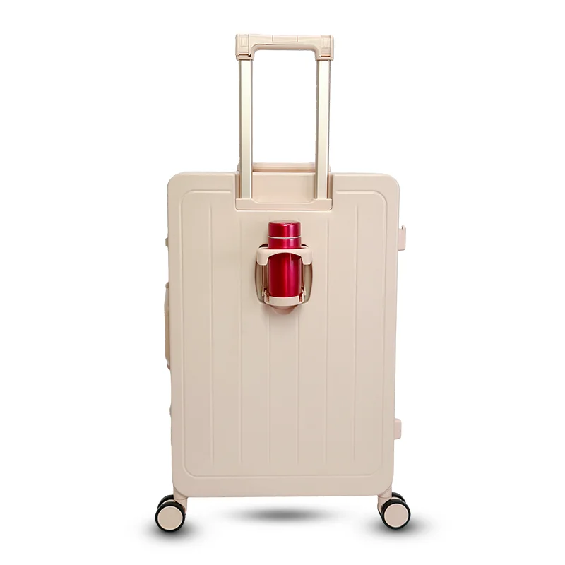 Unisex Front Open Pocket Luggage PC Material Spinner Caster Suitcase with USB Charging Cup Holder Carry-On Size