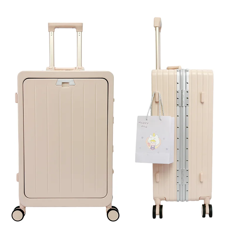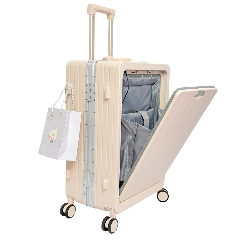 Carry on Luggage Suitcase 20 Inches Check-in Hand Luggage Suitcase Front Open Pocket USB Trolley Bag