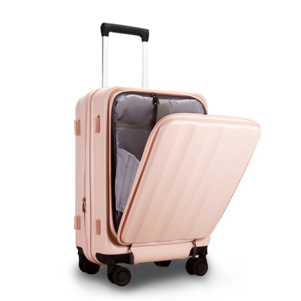 Sale Travel Luggage Trolley Suitcase with Front Open Compartment Spinner Caster PC Material Maletas De Viaje