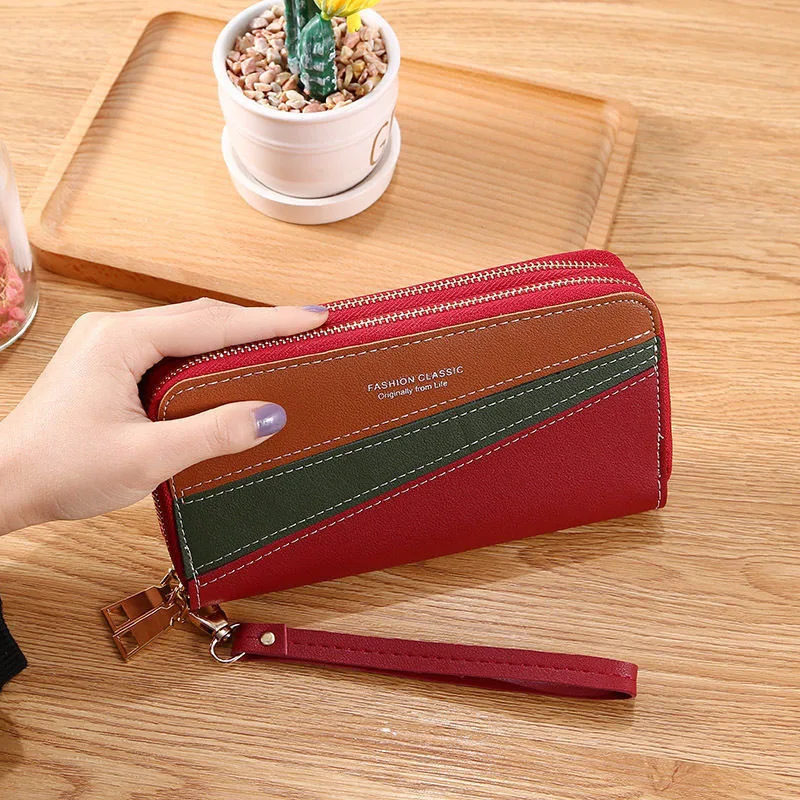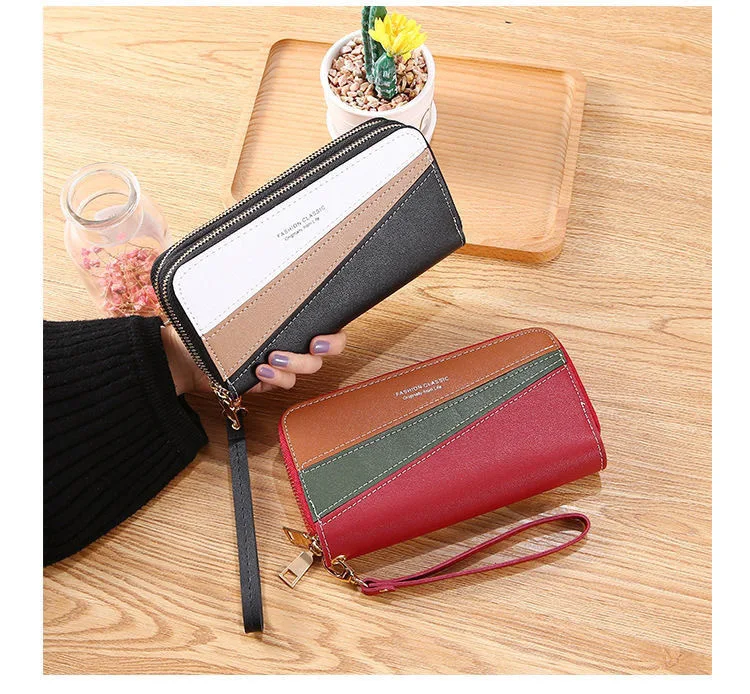 High Quality Good Price Women's Wallet Long Handbag Pu Double-layer Zipper Coins Wallet Purse Stylish Contrast Color Mobile Phon