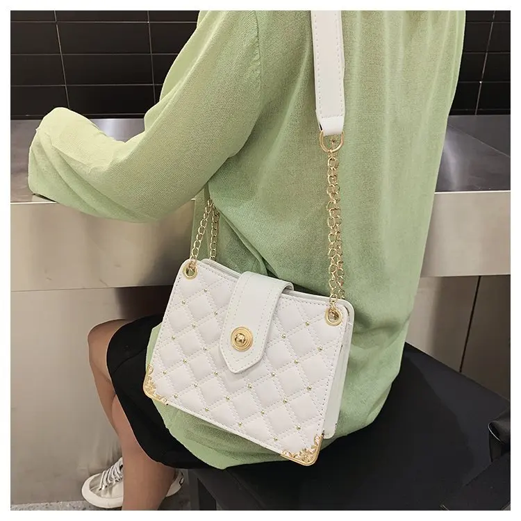 Cheap 2023 Winter New Fashion Messenger Bag Single Shoulder Chain Small Square Bag Thread Large Capacity Rivet Bag for Ladies
