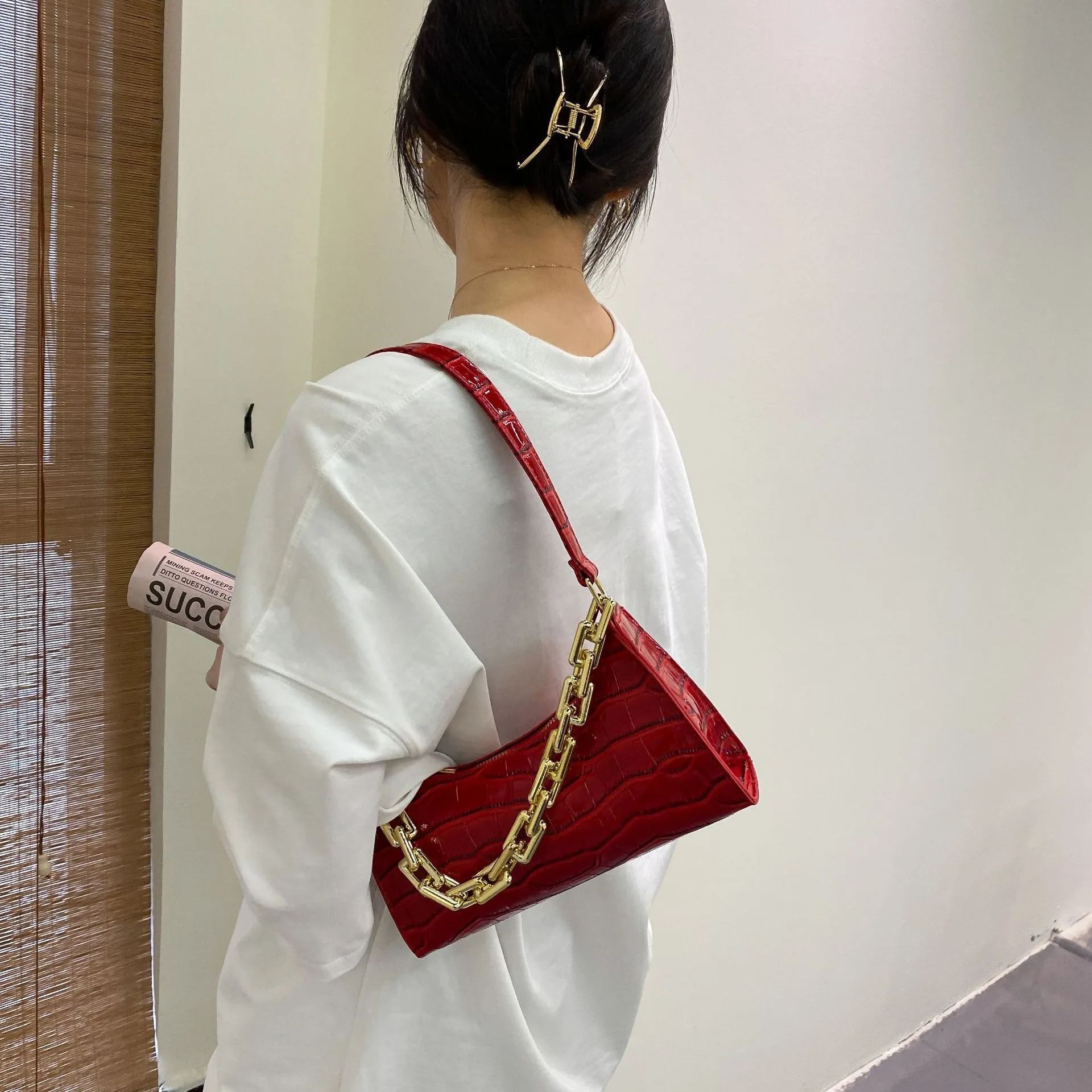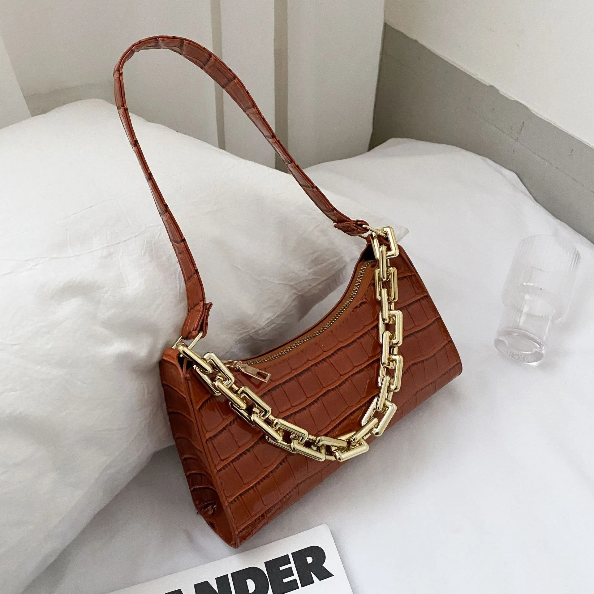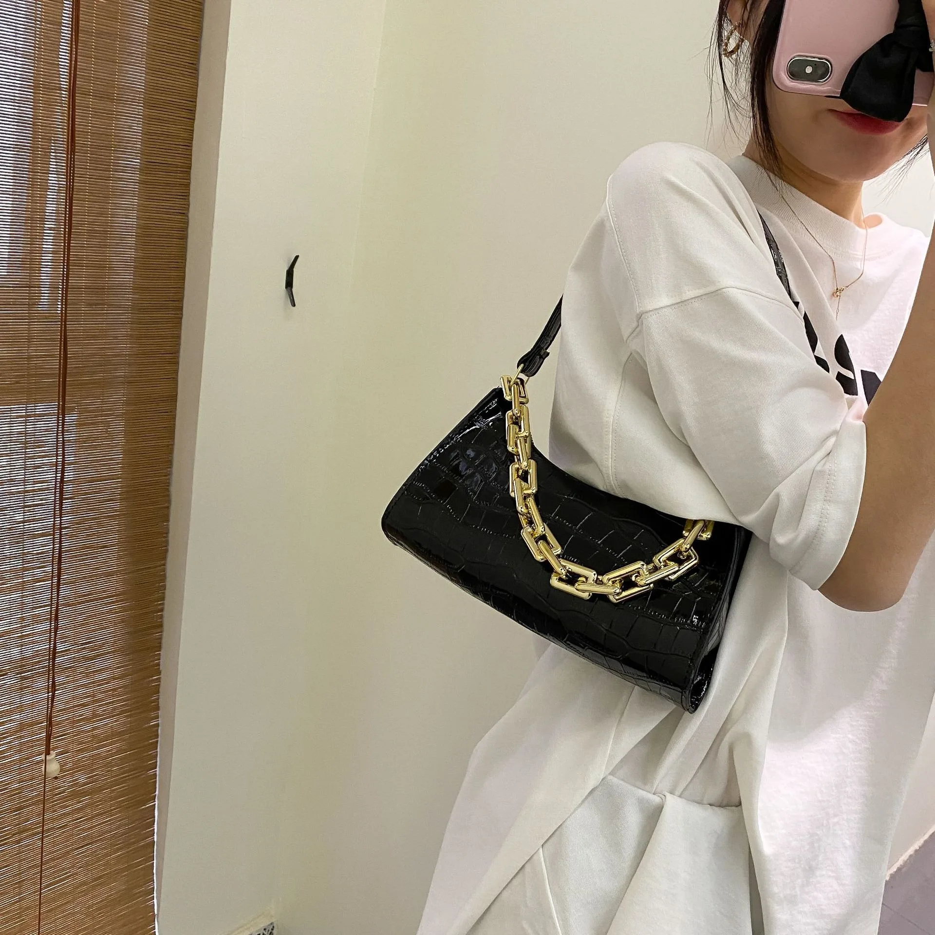 Fashion Luxury Chains Crossbody Hand Bags for Women PU Ladies Purses Girl Mini Pure Color Zipper Square Alligator Handbags