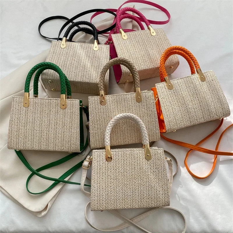 Wholesale Straw Style Fashion Square Handbags Underarm Crossbody Bags Casual Mini Tote Shoulder Bag for Women