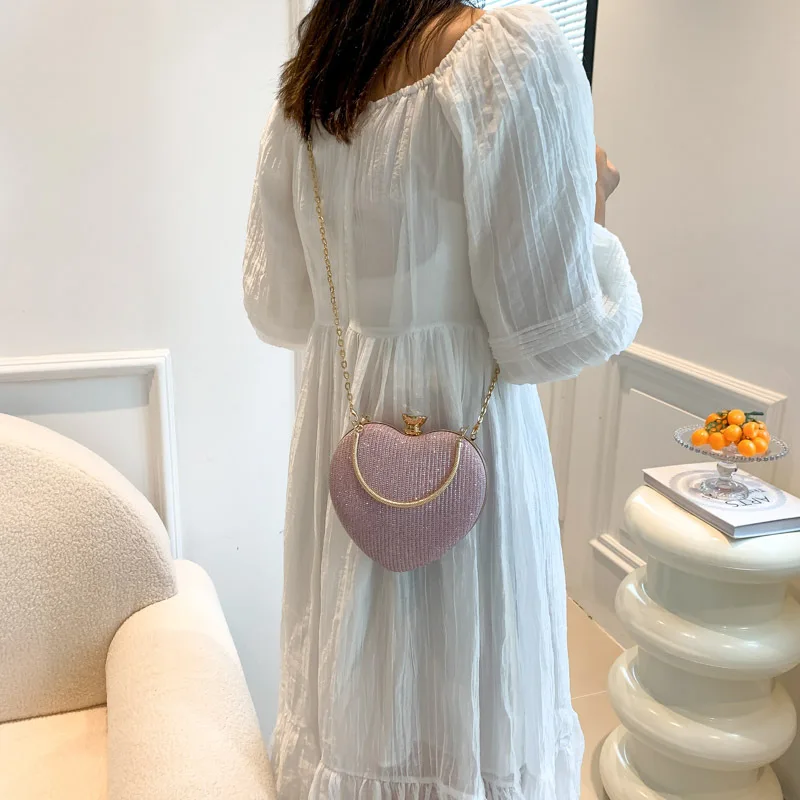 Latest Popular Peach Heart Handbags Luxury Diamond Bags Purses for Female Crossbody Bags Tote Bag for the Party