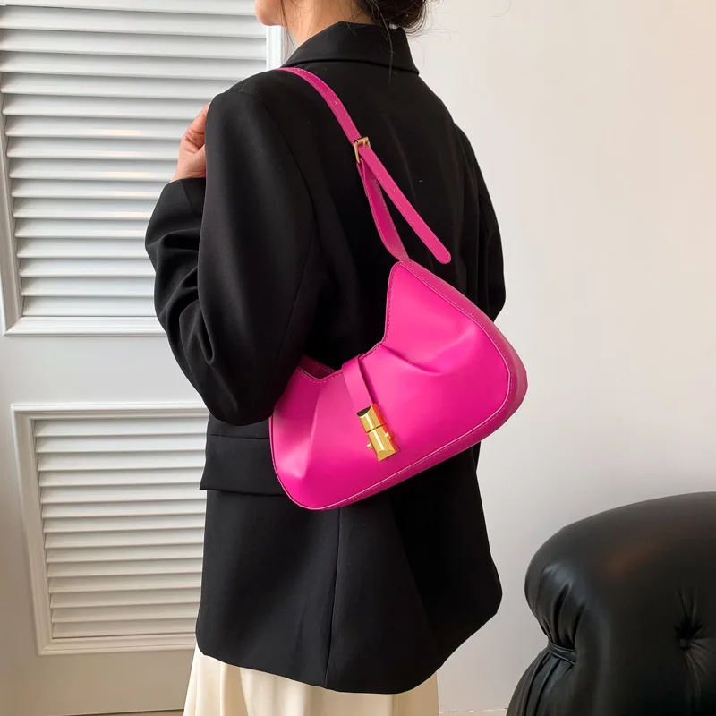 Chic Simple Small Shoulder Bags for Women Solid Color Pu Leather Handbag Clutch Lady Crossbody Purse Messenger Bag